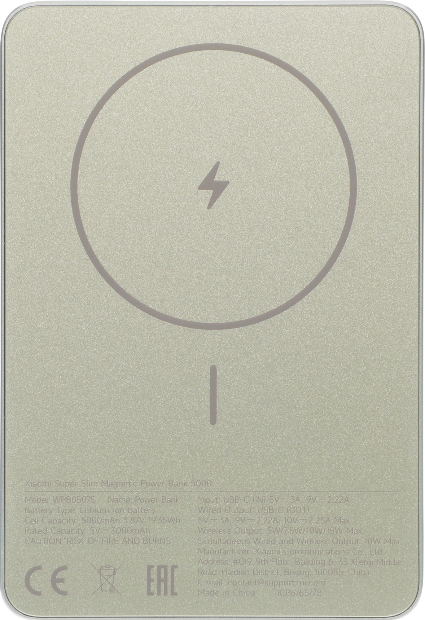 Мобильный аккумулятор Solove W9 5000mAh QC3.0/PD3.0 20W 3A USB-C беспров.зар. бежевый (W9 BEIGE RUS)