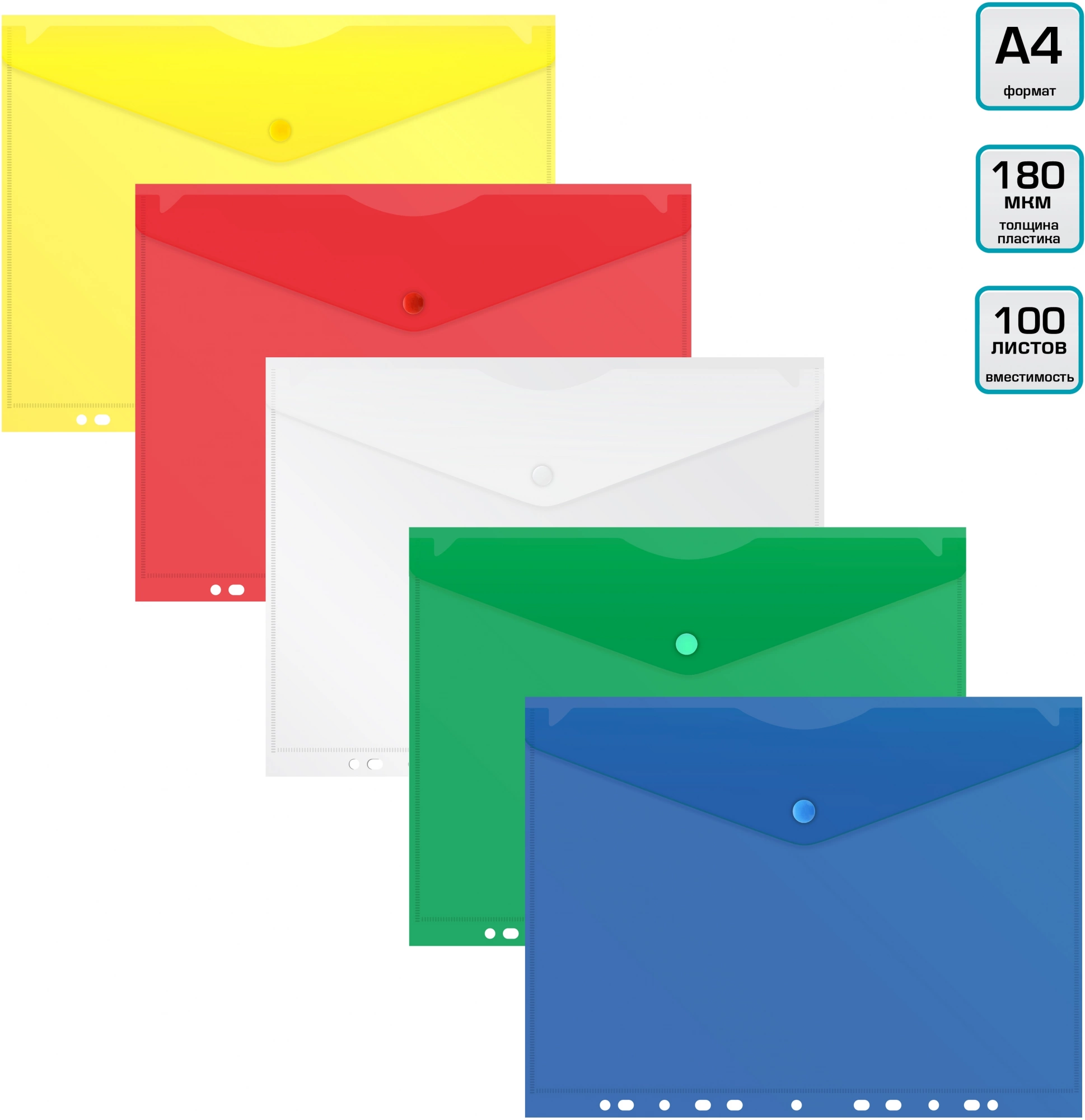 Конверт на кнопке Бюрократ -PK880CLEAR/1 A4 с перфорац. по длинной стороне пластик 0.18мм прозрачный