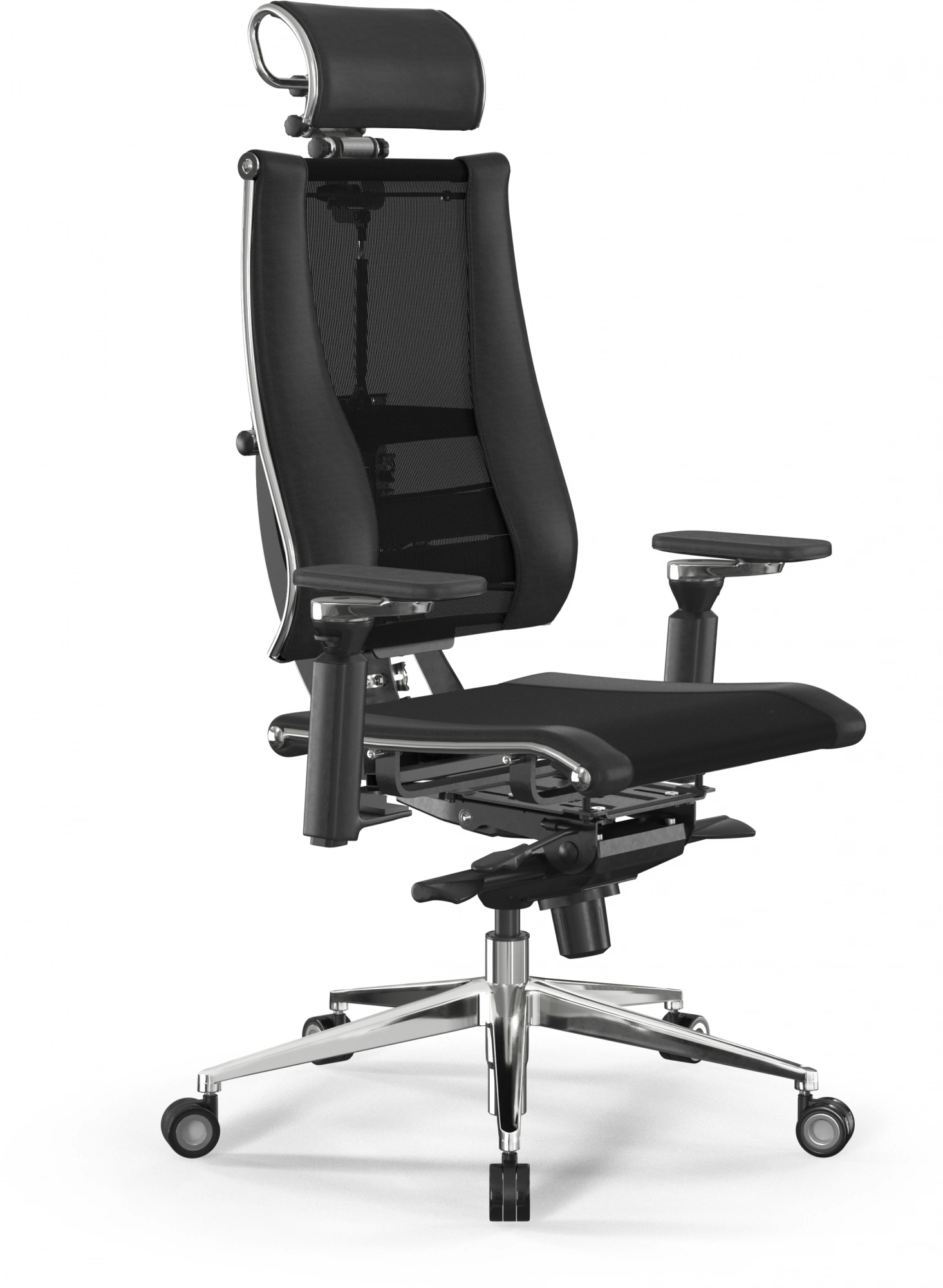 Кресло руководителя Метта Yoga 4DF B2-14D - YM93+Infinity черный сет./ткань/экокожа с подголов. крестов. алюминий хром (комплект 1шт)