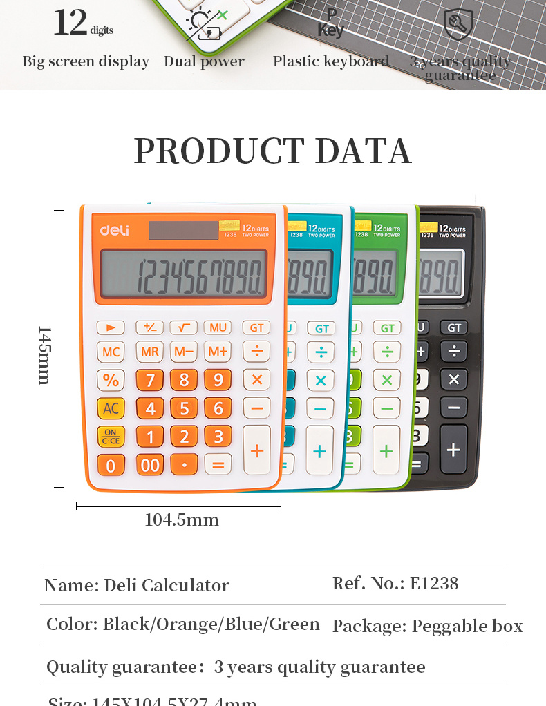 Калькулятор настольный Deli E1238black черный 12-разр.