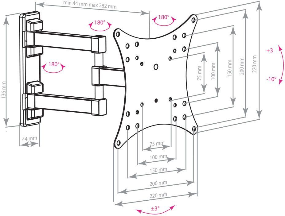 Кронштейн для телевизора Arm Media MARS-4 черный 20"-43" макс.20кг настенный поворот и наклон