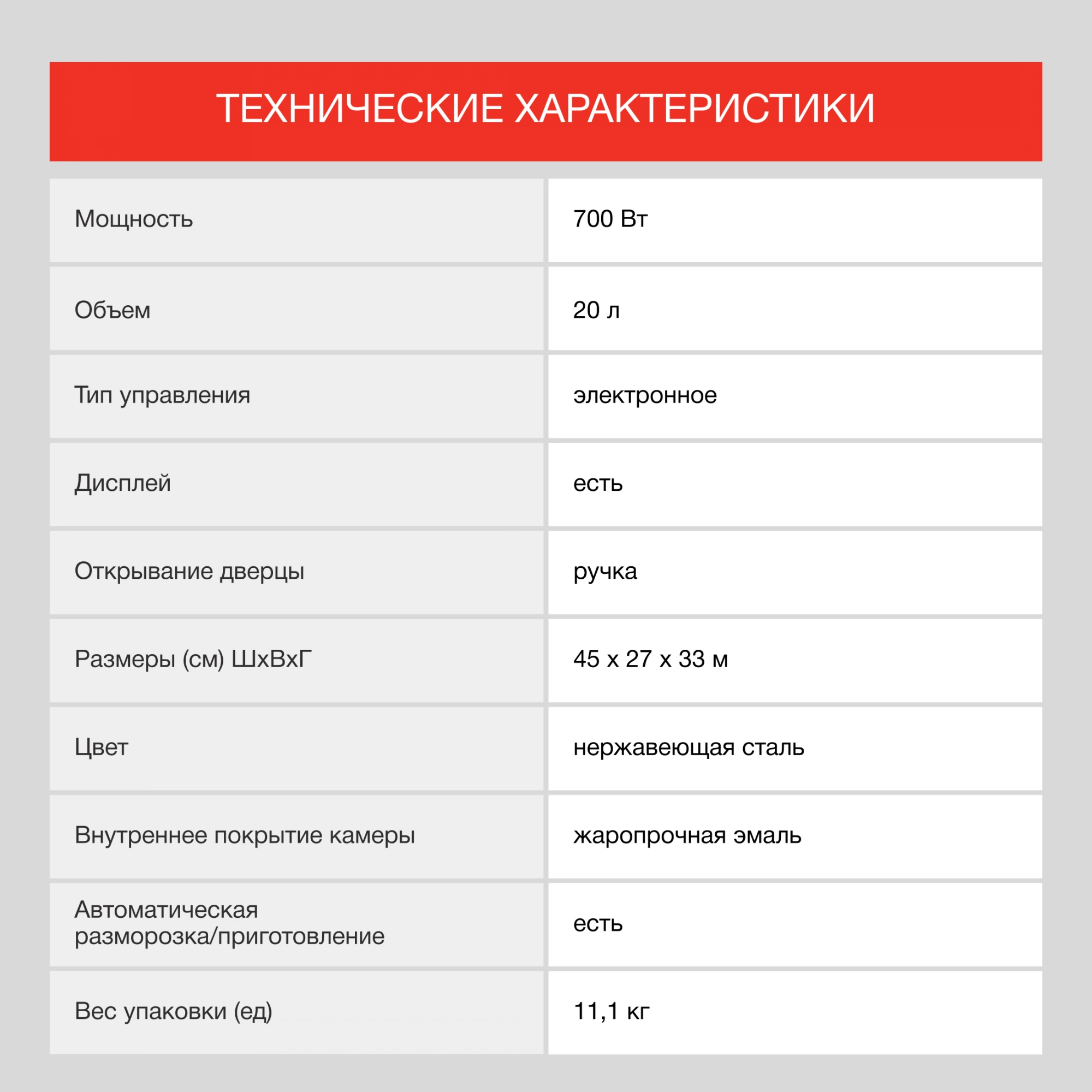 - Режимыавтоматическая разморозка, автоматическое приготовление, соло