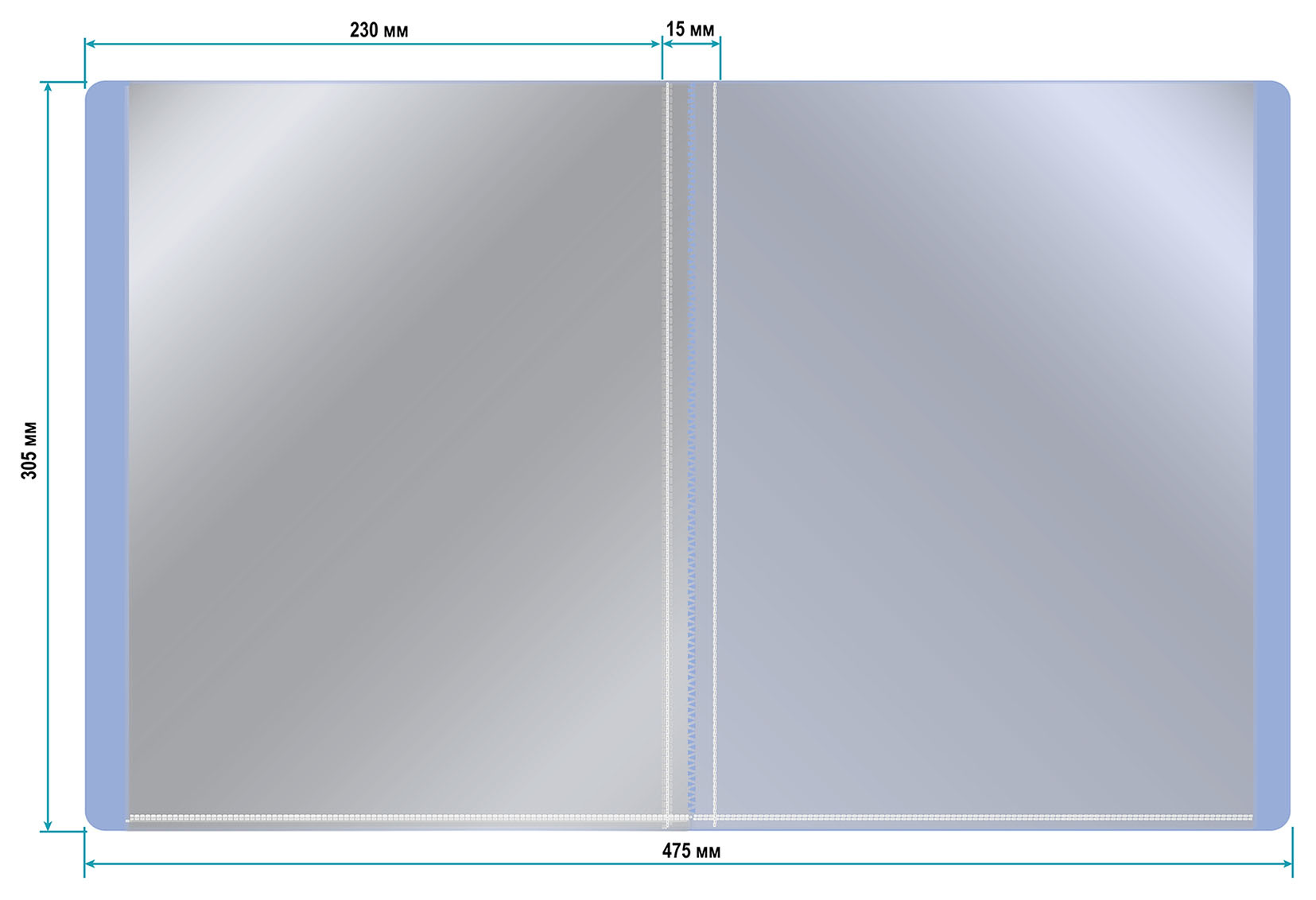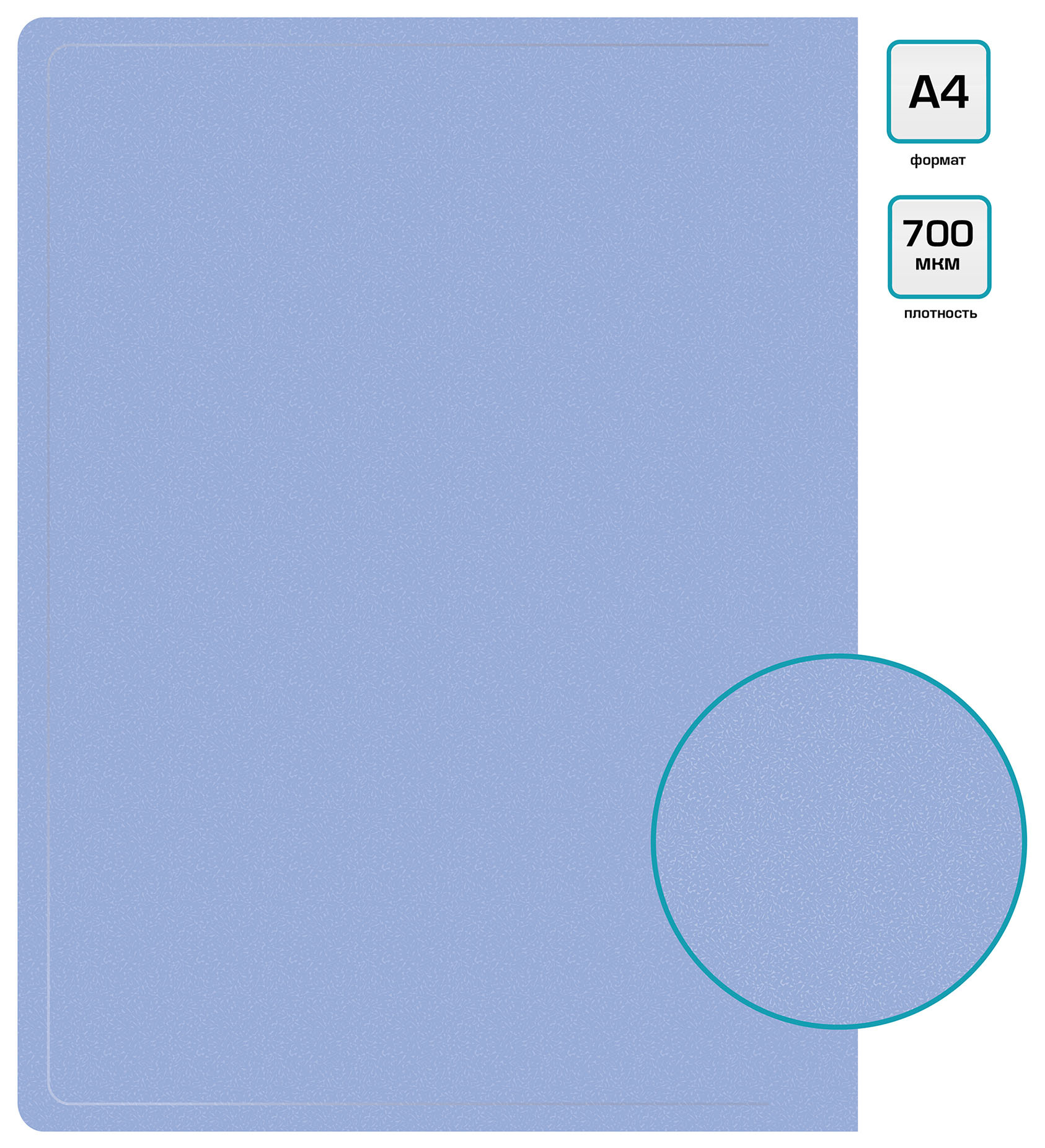 Папка-портфолио с 40 прозр.вклад. Бюрократ Gems GEMPP40AZURE A4 пластик 0.7мм карм.на лиц.стор. голубой топаз