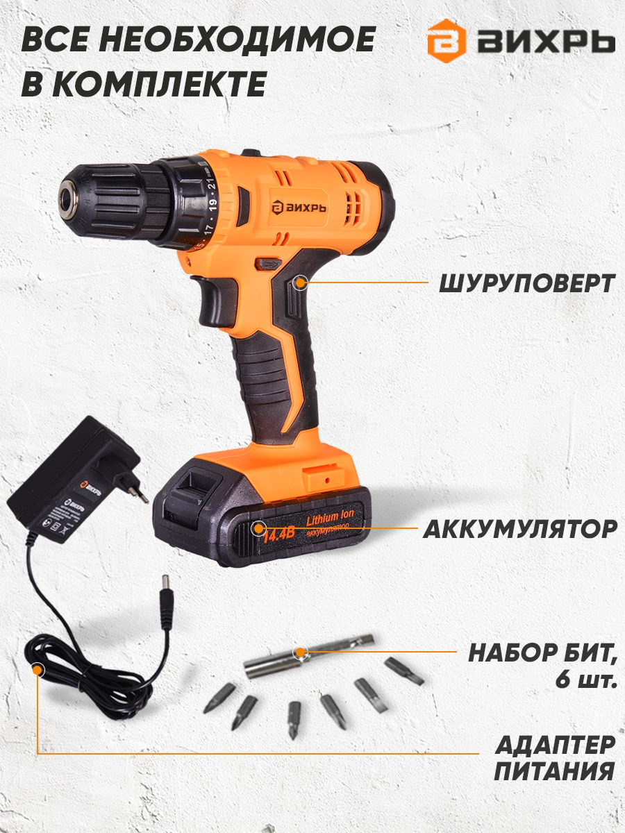 Дрель-шуруповерт Вихрь ДА-14,4Л-2 аккум. патрон:быстрозажимной (72/14/15)