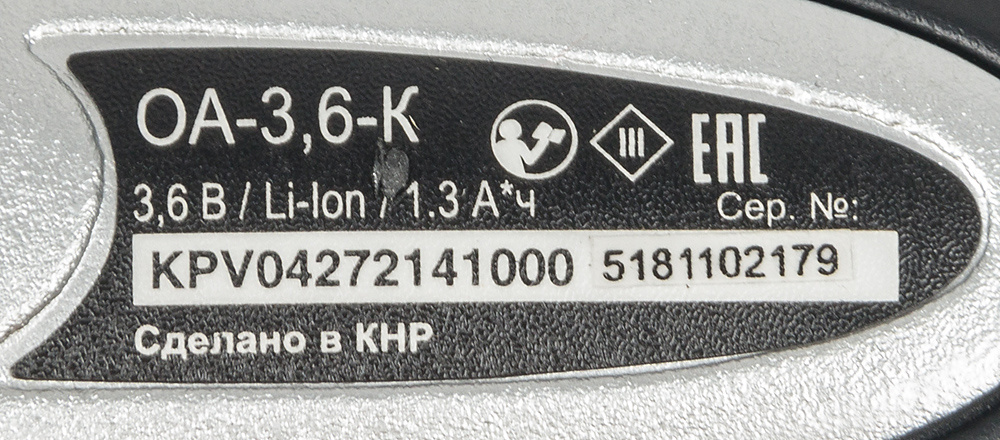 - Напряжение аккумулятора3.6