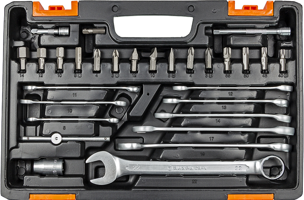 - Другие инструменты/принадлежностиУдлинители: 1/2"" 125 мм, 250 мм. CrV; 1/4"" 50 мм, 100 мм. CrV; гибкий отверточная рукоятка 1/4"" CrV. Адаптер для бит: 1/4"" длина 25 мм. CrV; 3/8""* 1/2"" .CrV; 1/2""* 5/16"" CrV. Биты 5/16"" Bits 5/16"" T40, Т45, Т50, Т55 S2; SL8, SL10, SL12; PH3, PH4; PZ3, PZ4; Н8, H10, H12, H14.