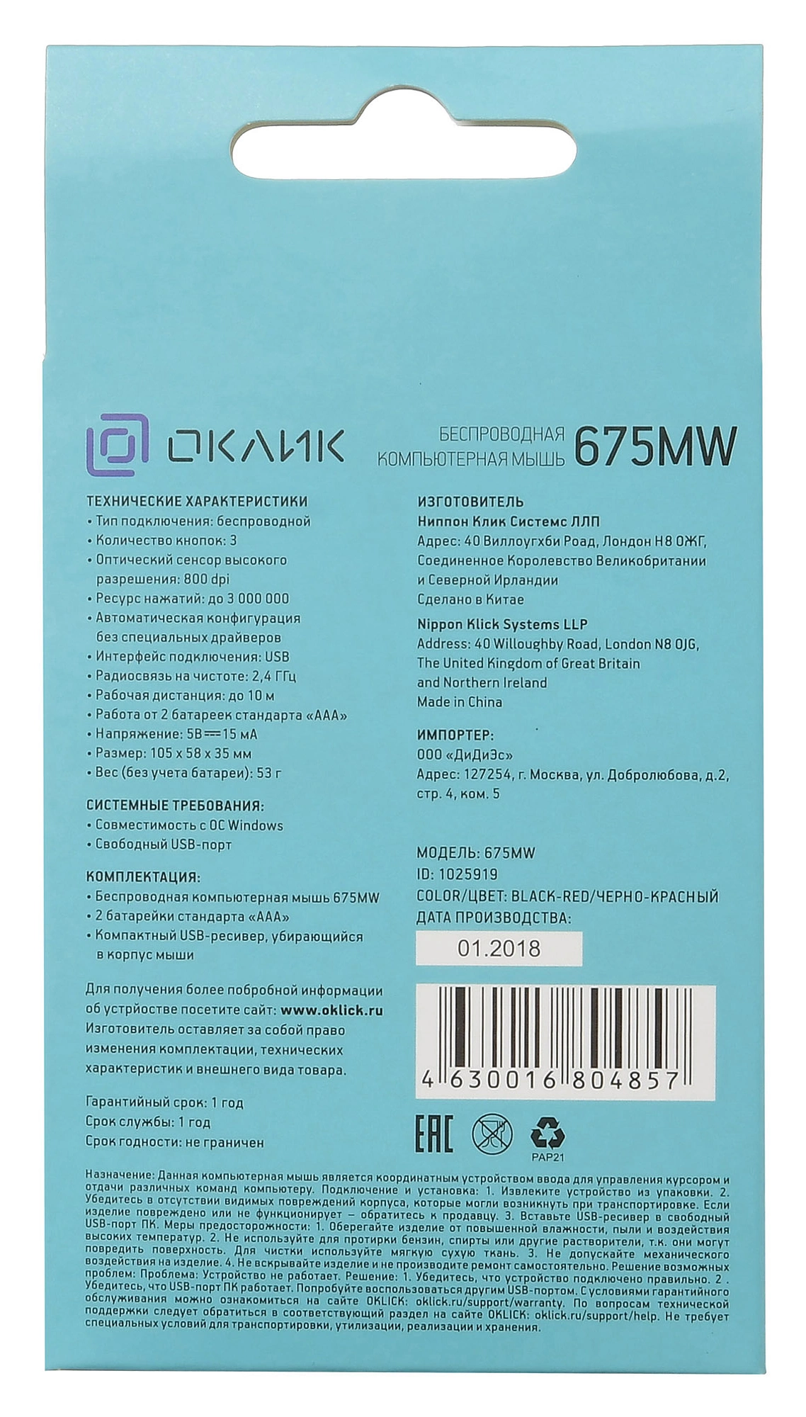 - КомплектацияБеспроводная компьютерная мышь 675MW 2 батарейки стандарта ААА Компактный USB-ресивер