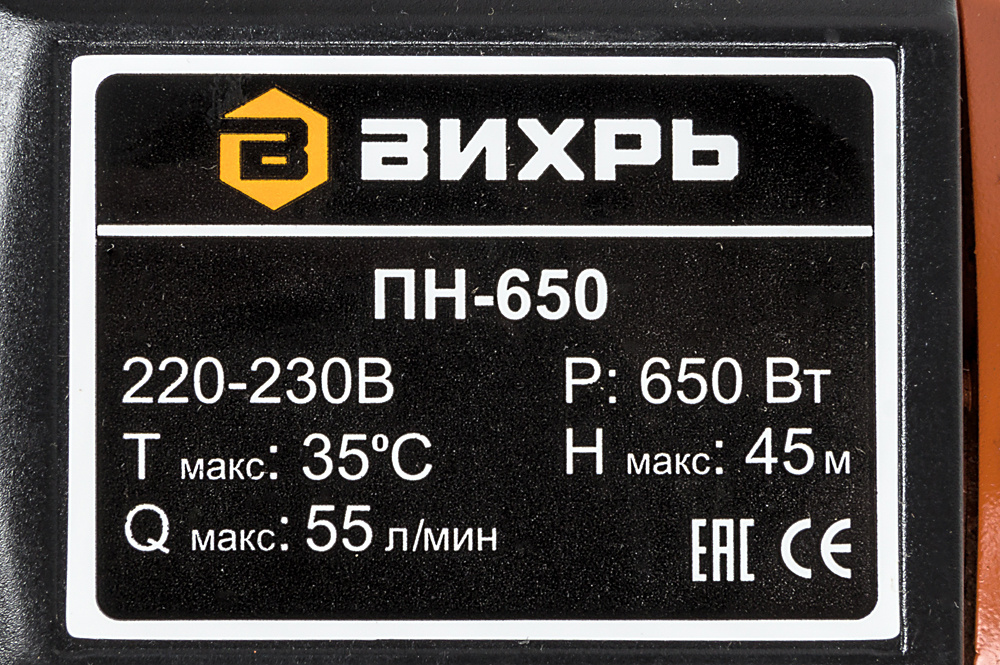 Насос поверхностный Вихрь ПН-650 650Вт 3300л/час (68/4/5)