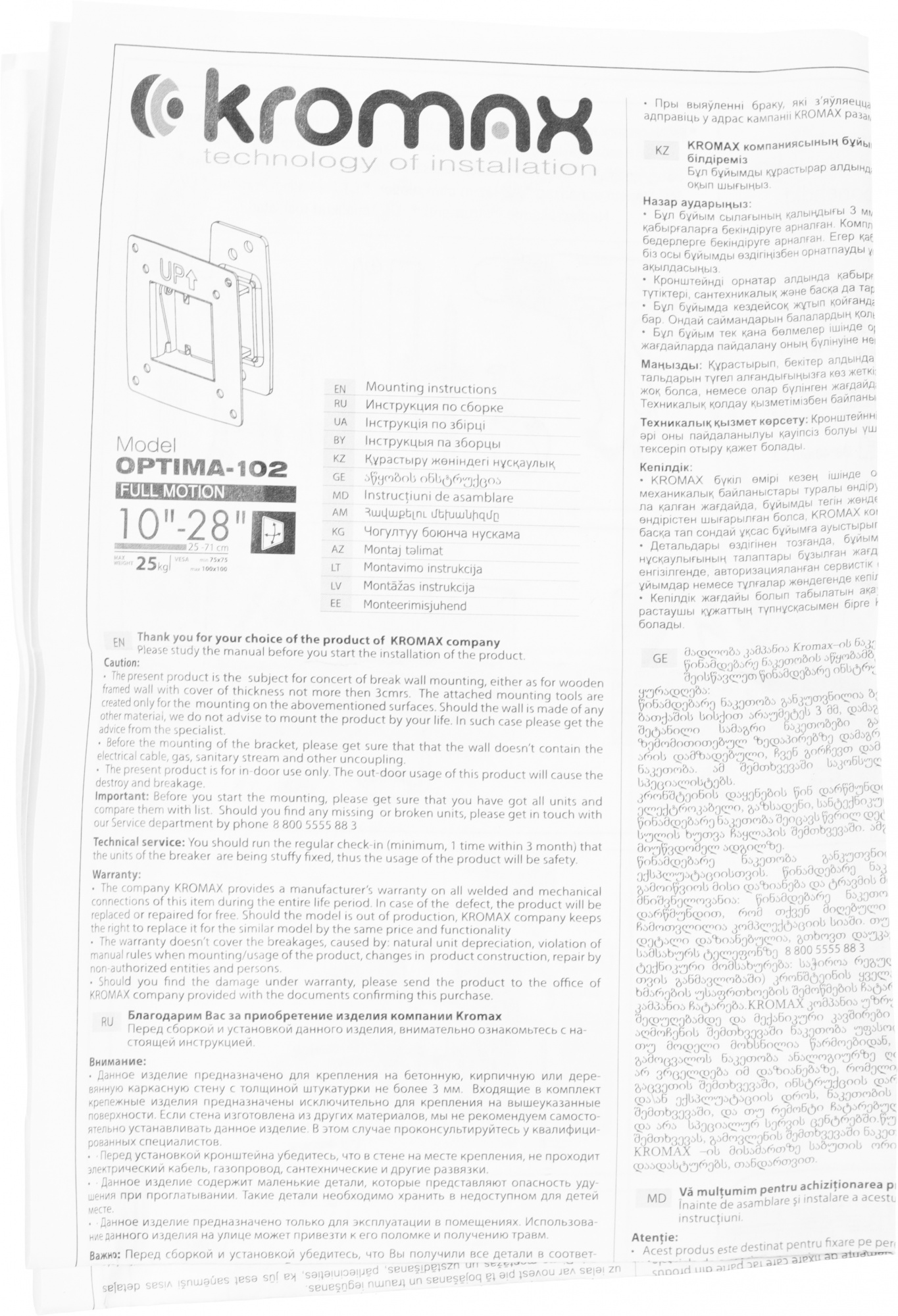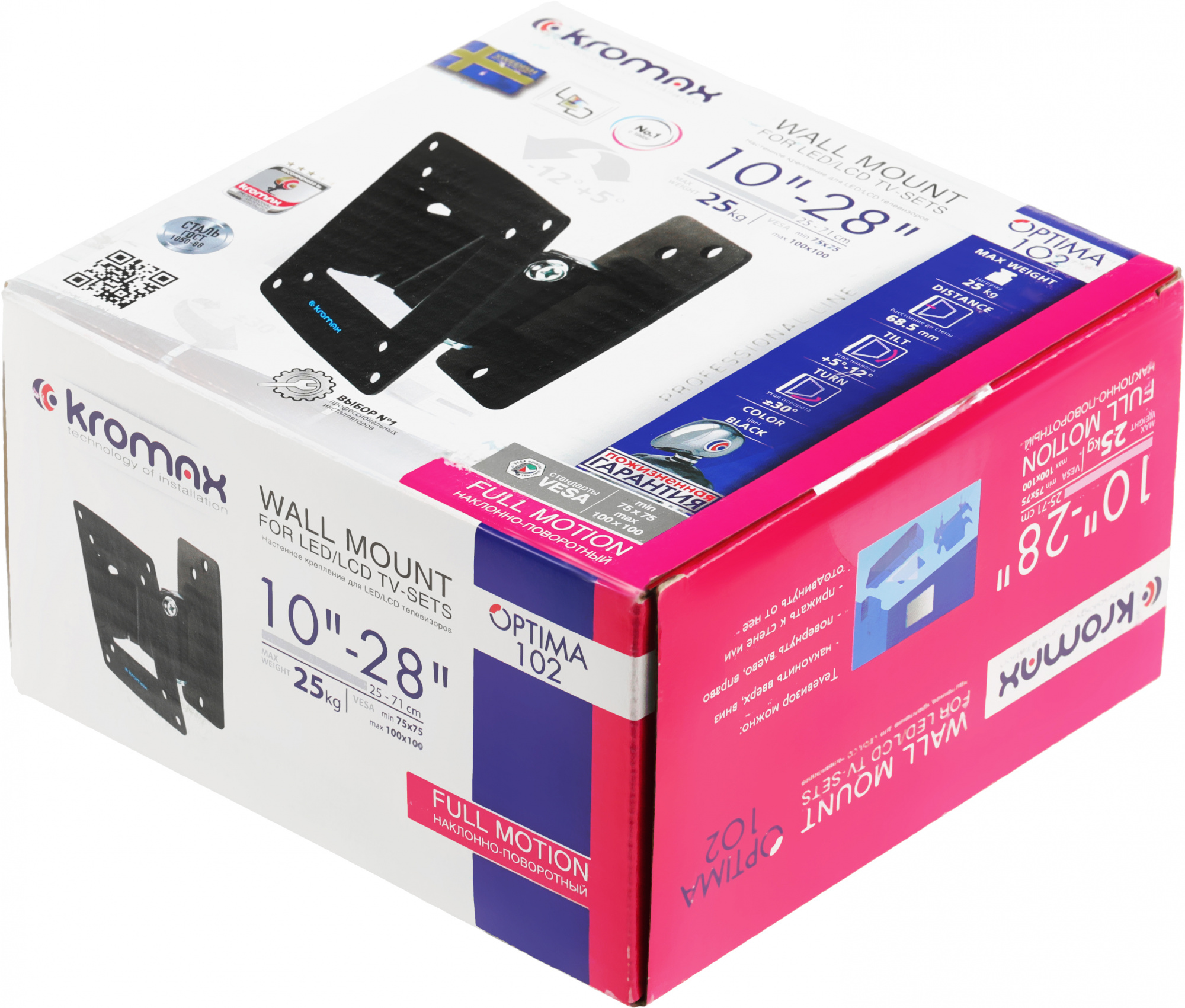Кронштейн для телевизора Kromax OPTIMA-102 черный 10"-28" макс.25кг настенный поворот и наклон