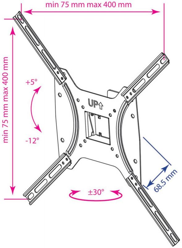 - Подходит для телевизоров c диагональю15", 19", 22", 24", 26", 28", 32", 37", 39", 40", 42", 43", 46", 48", 50", 52", 55"