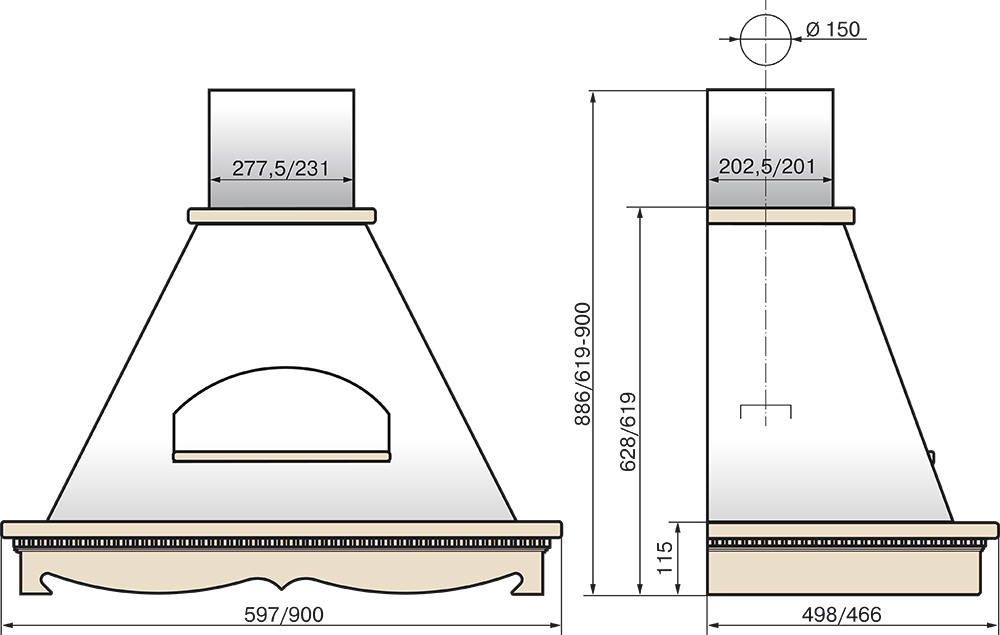 Вытяжка каминная Elikor Бельведер 60П-650-П3Д бежевый/дуб неокрашенный управление: ползунковое (1 мотор)