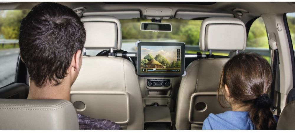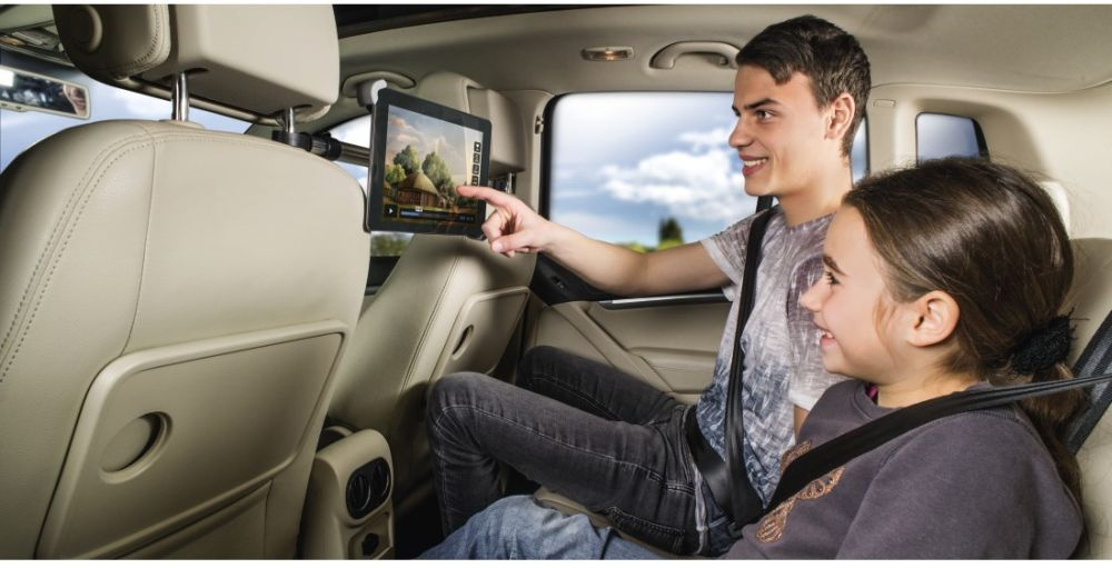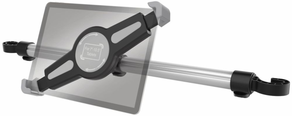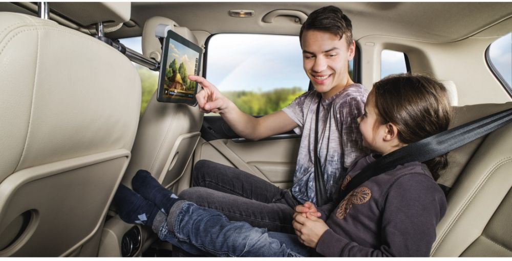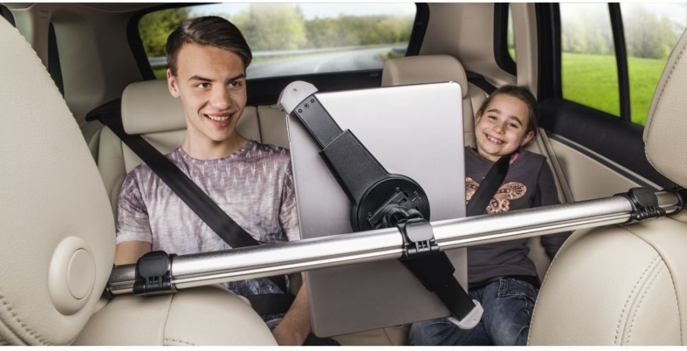 Благодаря шаровому шарниру устройство поворачивается на 360 градусов и имеет регулируемый угол наклона. Крепится между двумя передними сиденьями. Для планшетов от 7 до 10,5"