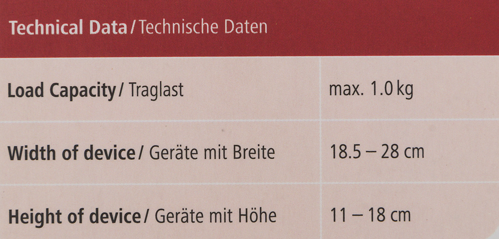 - Размер удерживаемого устройства, min185x110x