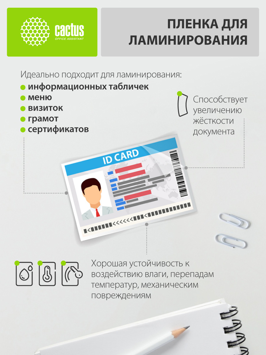 Пленка для ламинирования Cactus 125мкм A4 (100шт) глянцевая 216x303мм CS-LPGA4125100