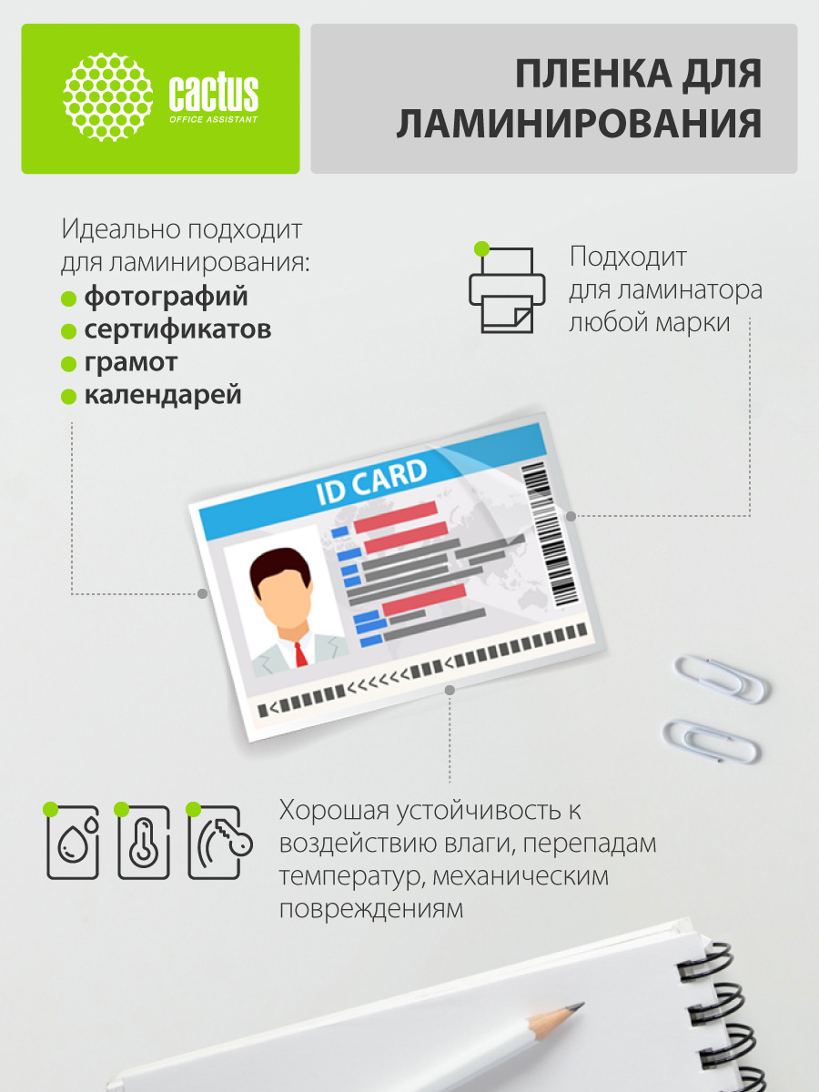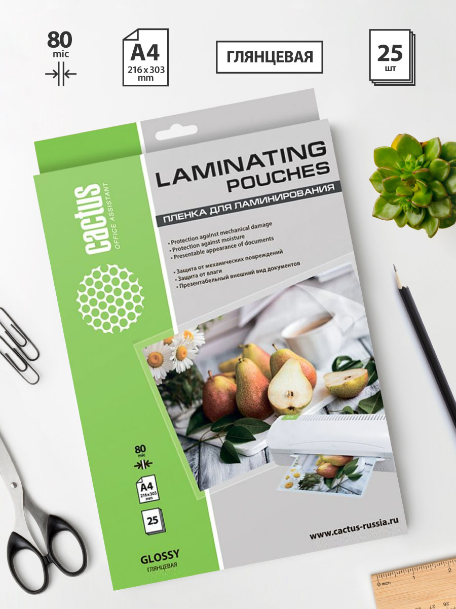 Пленка для ламинирования Cactus 80мкм A4 (25шт) глянцевая 216x303мм CS-LPGA48025