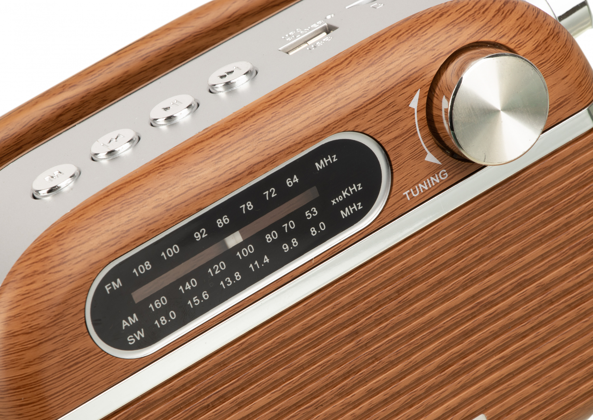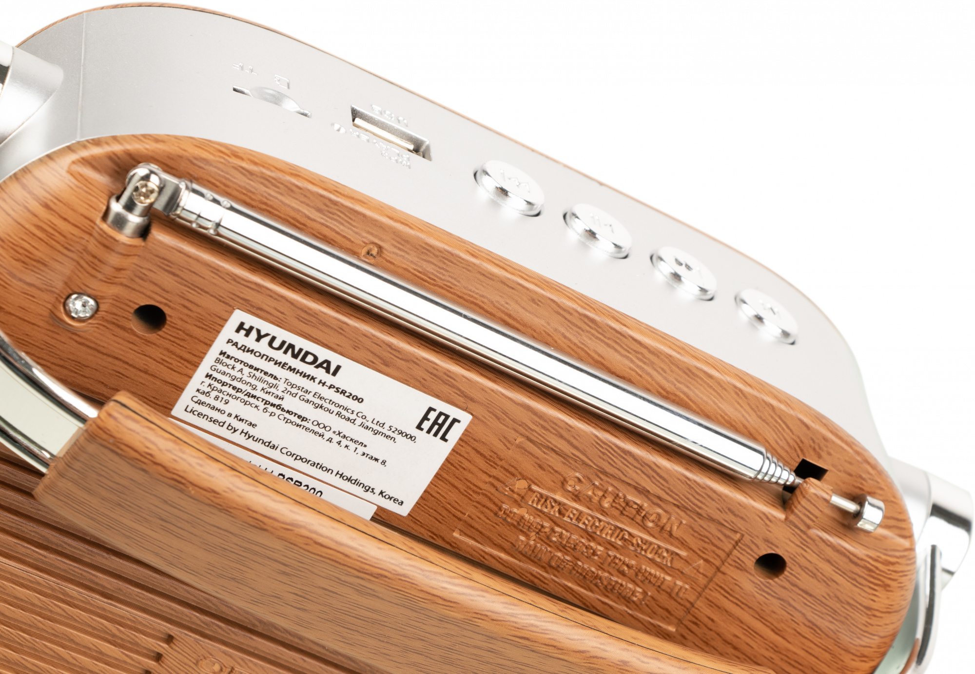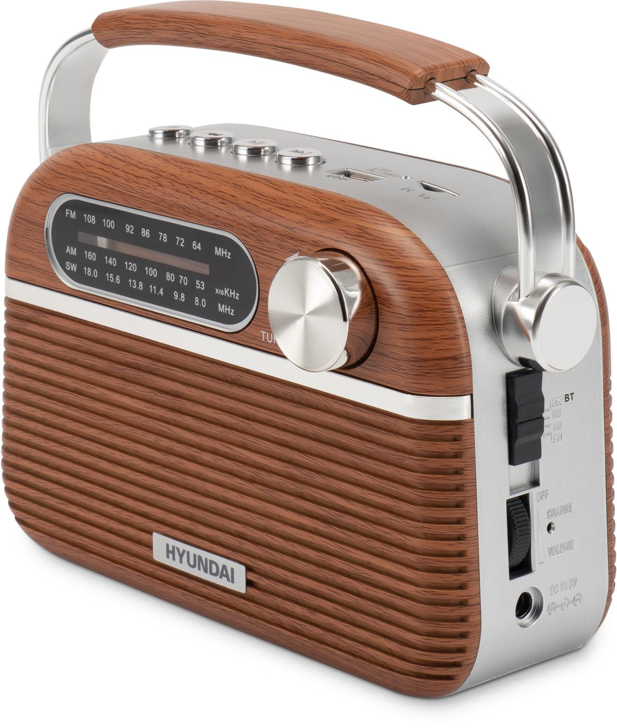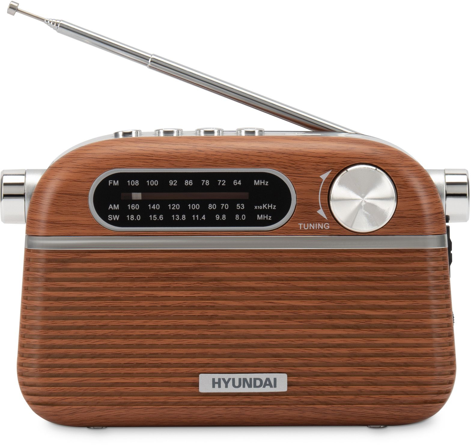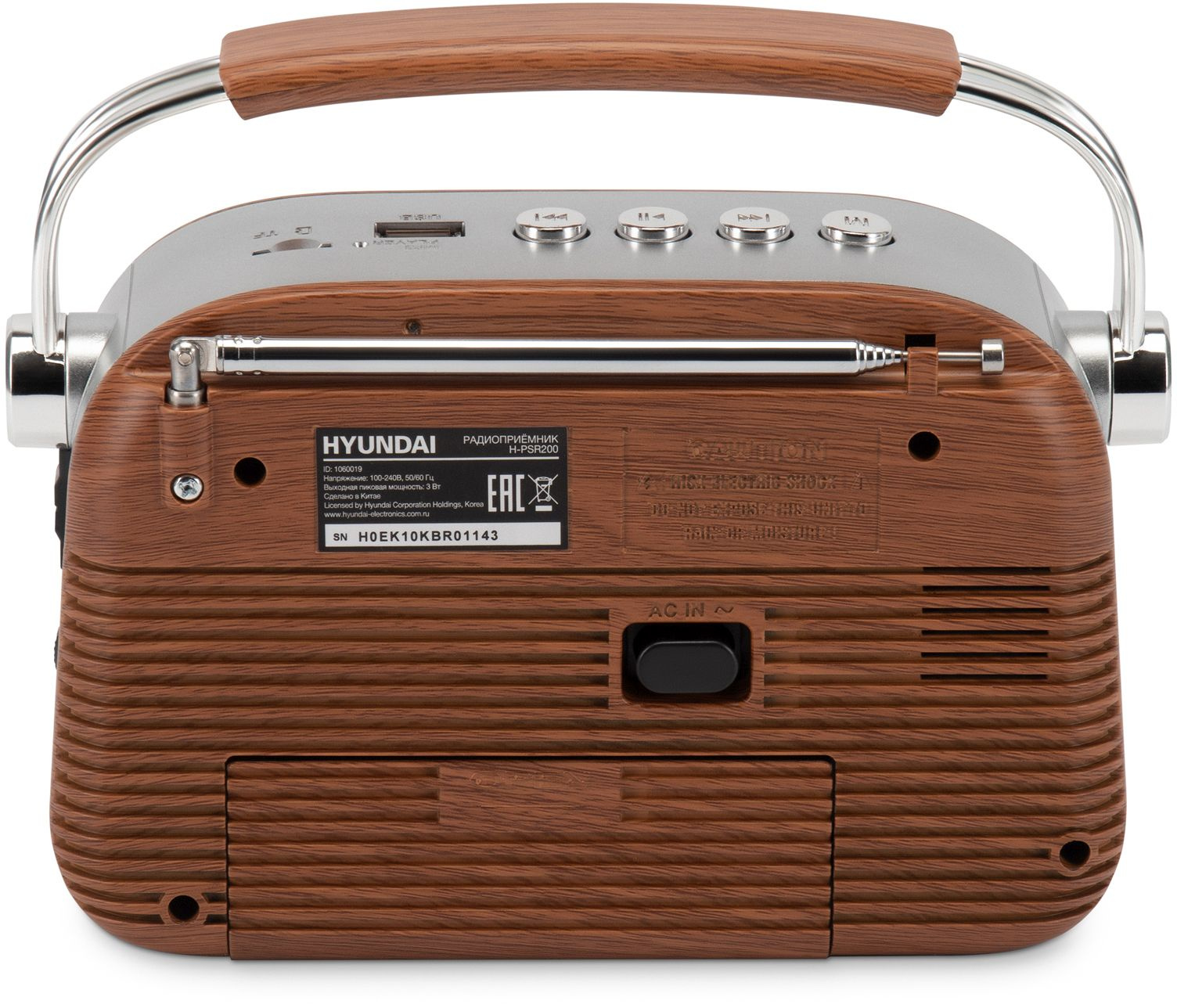 Радиоприемник портативный Hyundai H-PSR200 дерево коричневое/серебристый USB microSD