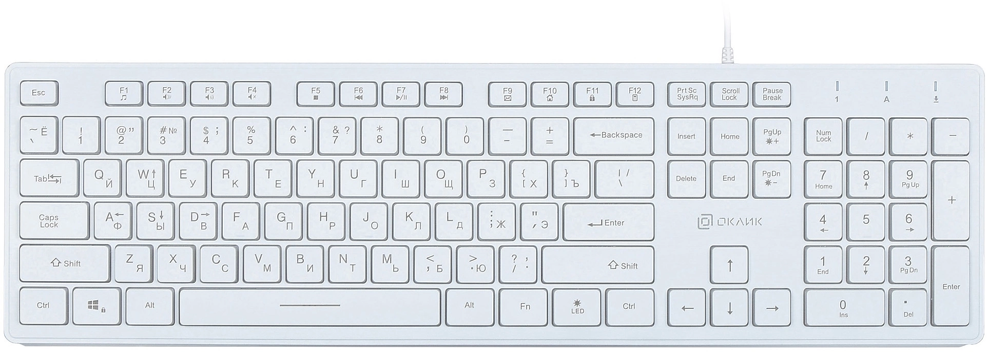 Клавиатура Оклик 550ML белый USB slim Multimedia LED