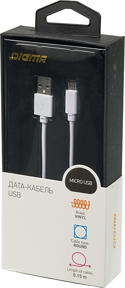 Кабель Digma MICROUSB-0.15M-WH USB (m)-micro USB (m) 0.15м белый