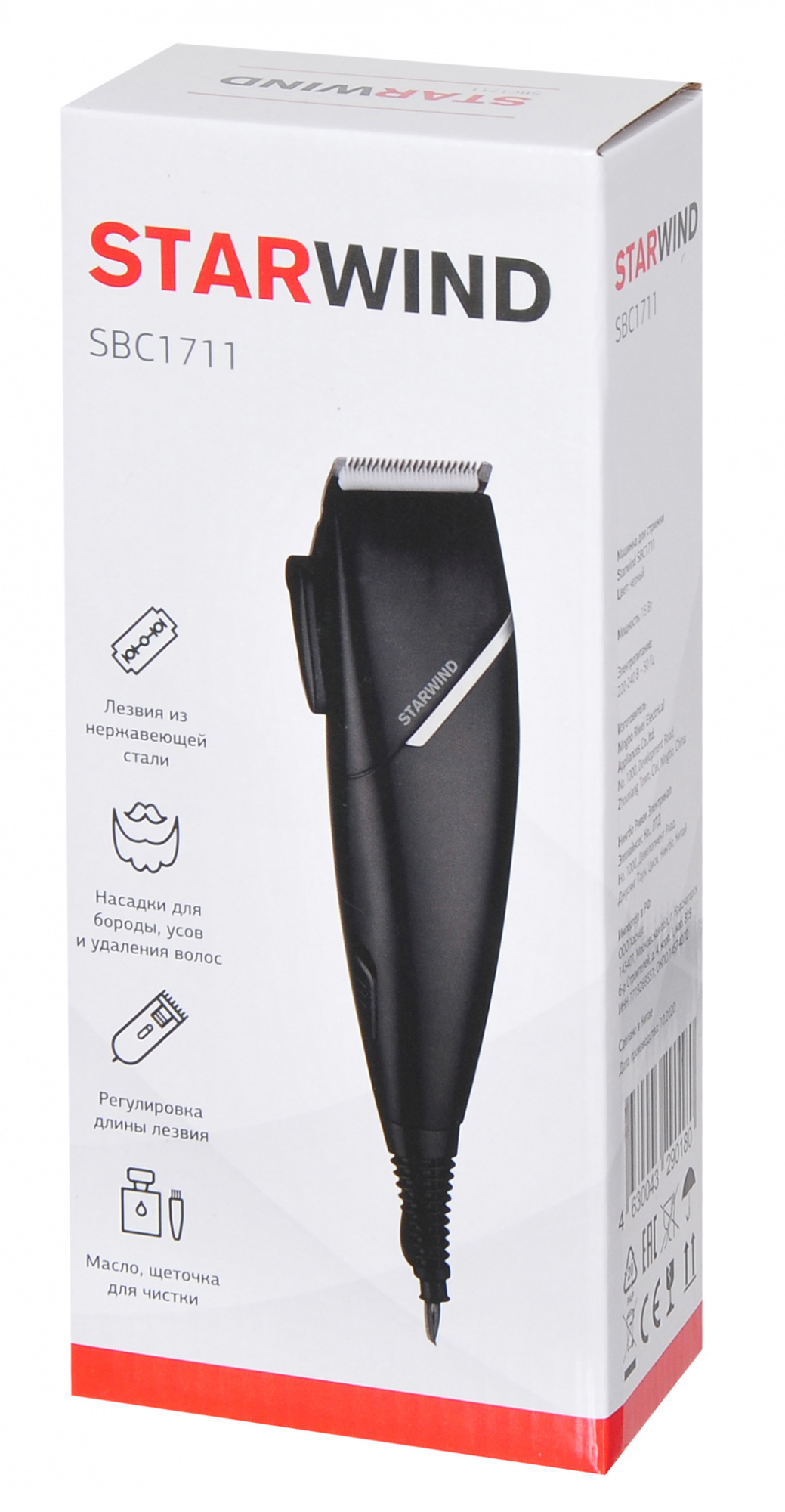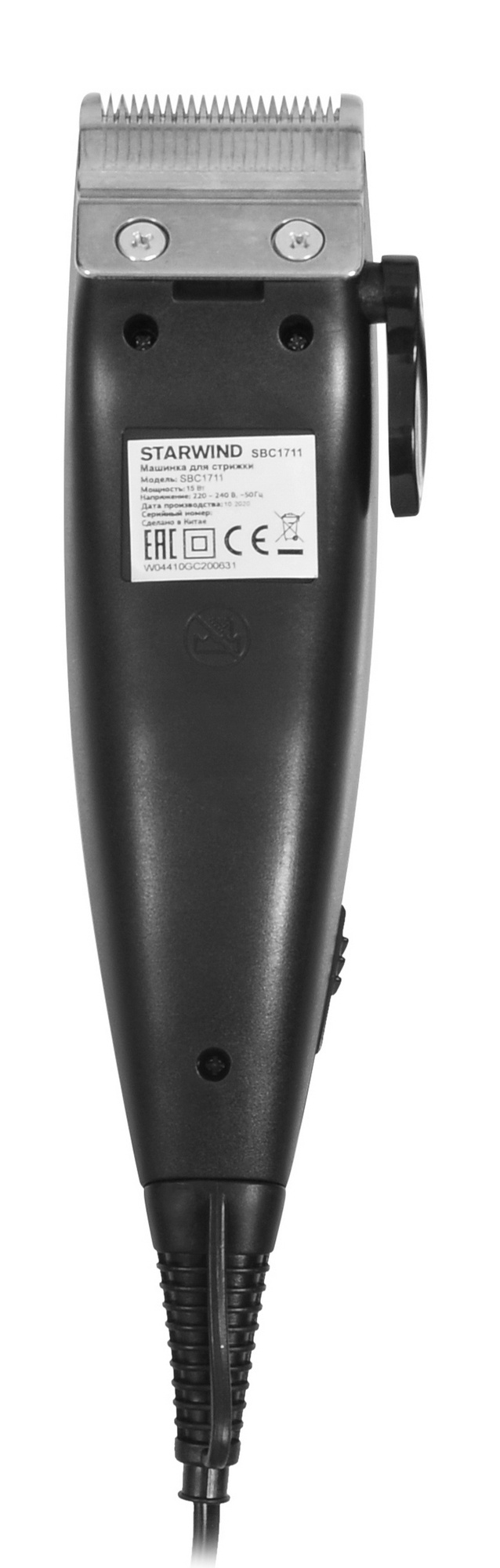Машинка для стрижки Starwind SBC1711 черный/серебристый 15Вт (насадок в компл:4шт)