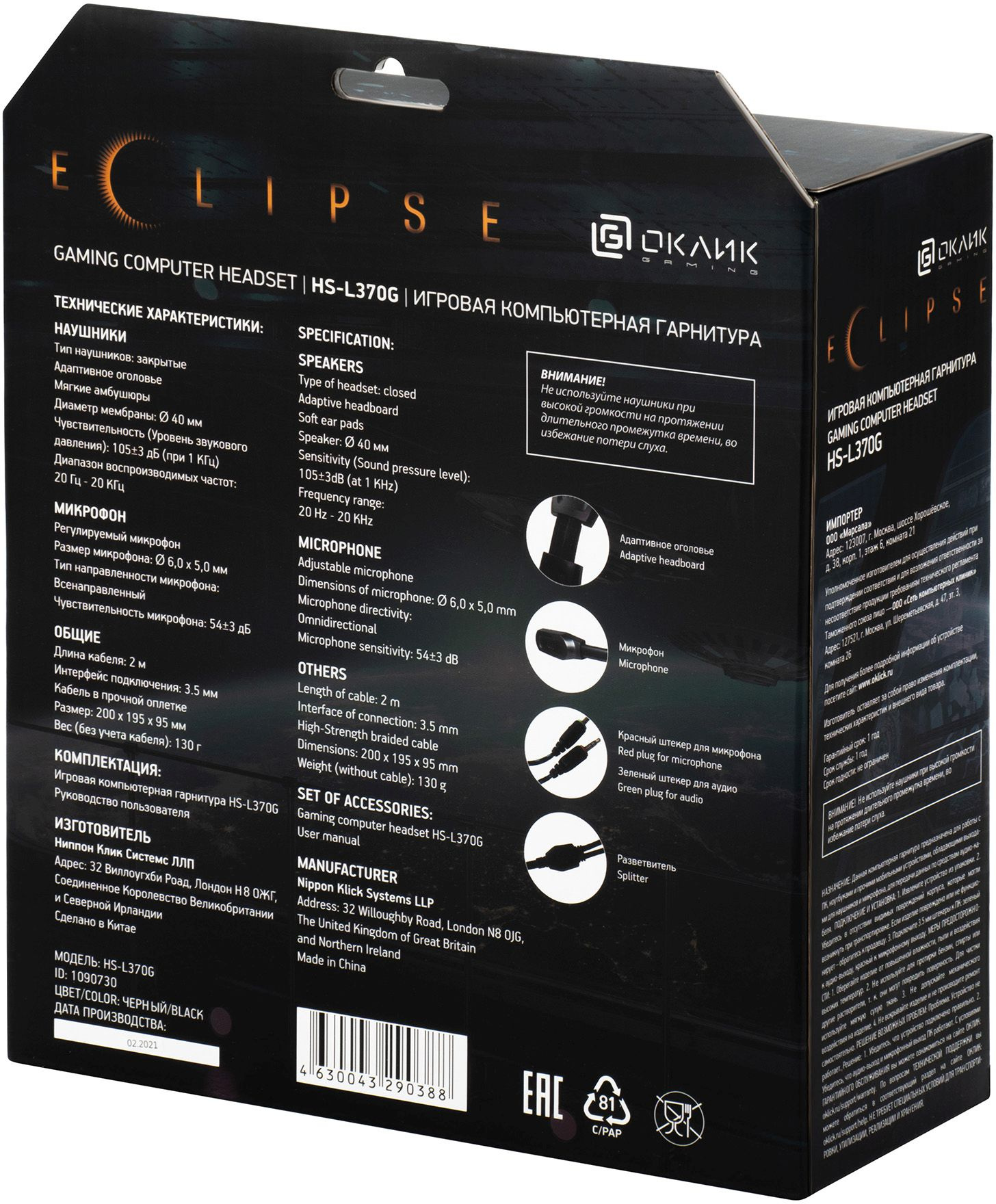 Наушники с микрофоном Оклик HS-L370G ECLIPSE черный 2м мониторные оголовье (1090730)