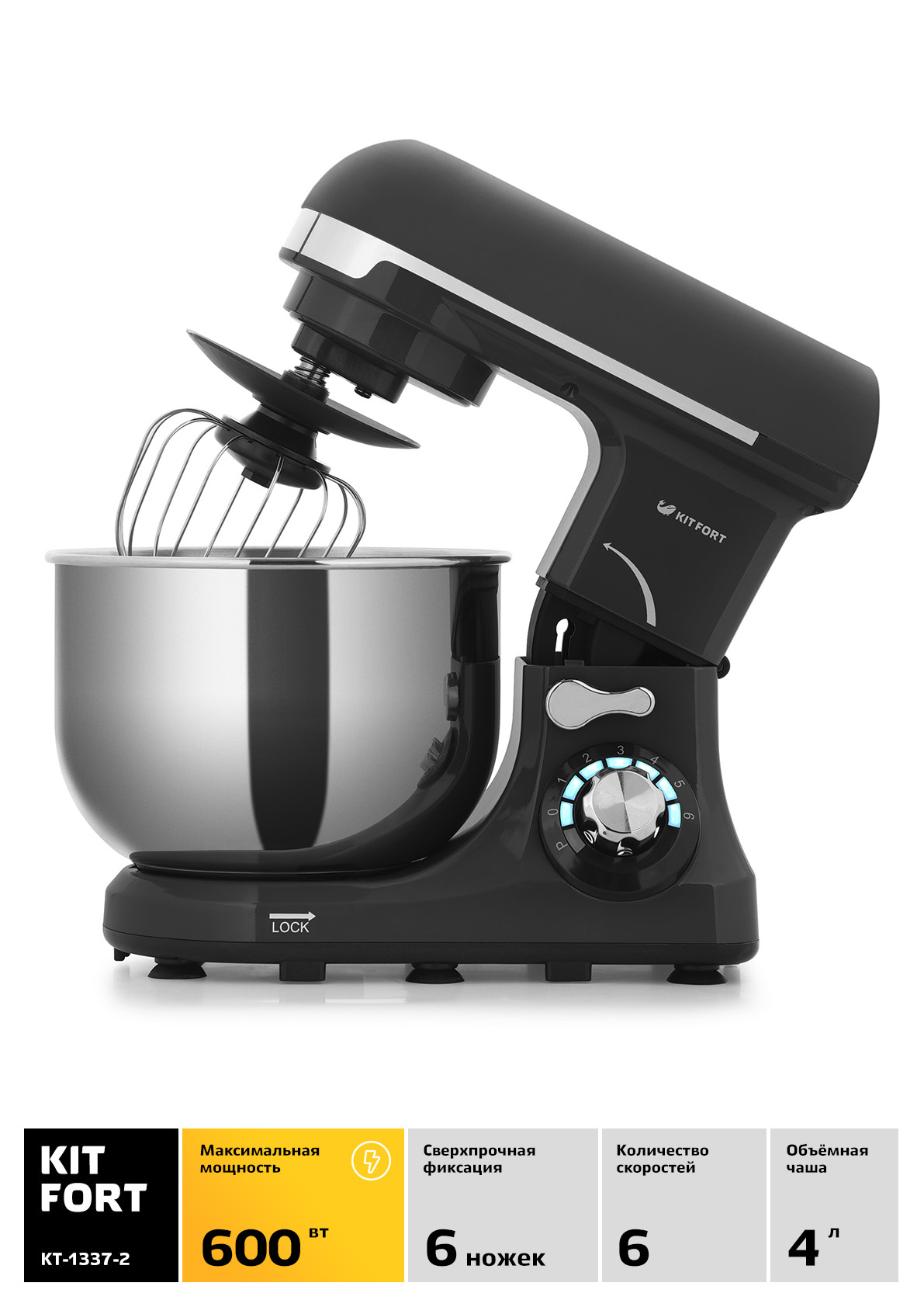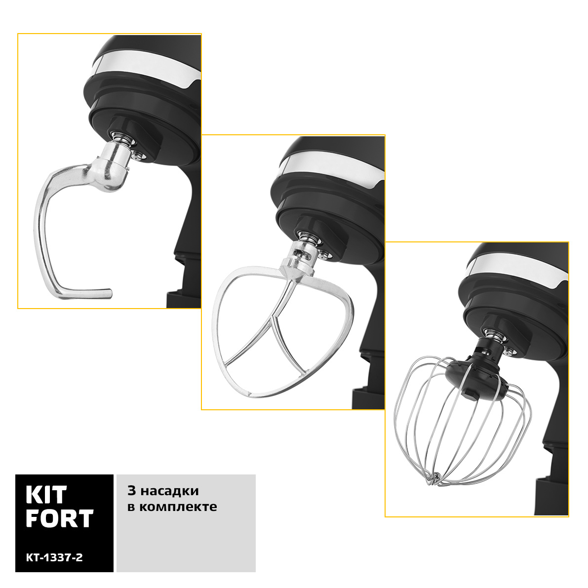Миксер планетарный Kitfort КТ-1337-2 600Вт черный/серебристый