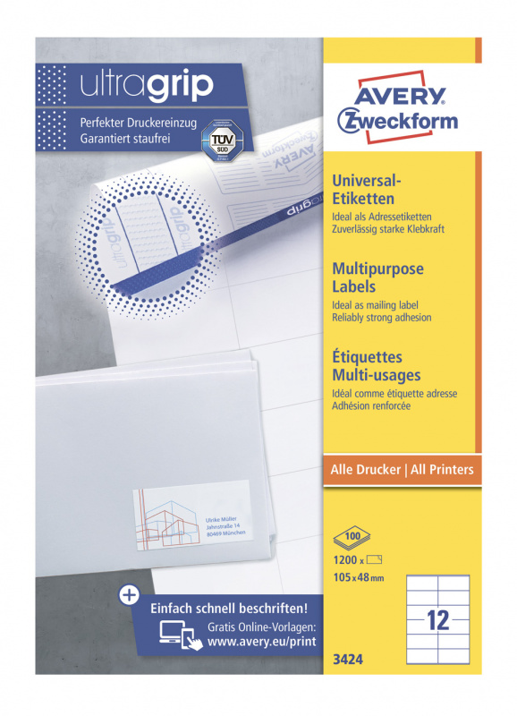 Этикетки Avery Zweckform 3424 A4 105x48мм 12шт на листе/70г/м2/100л./белый матовое самоклей. универсальная