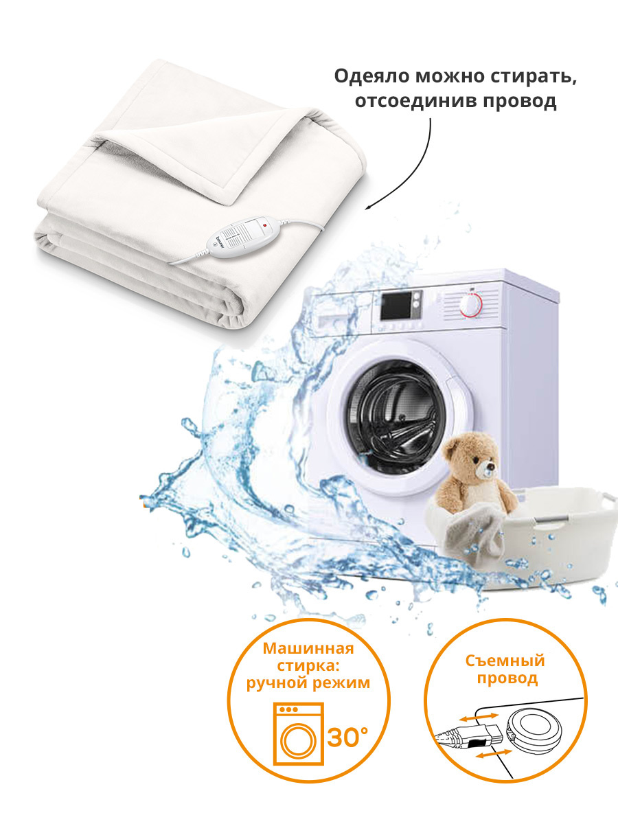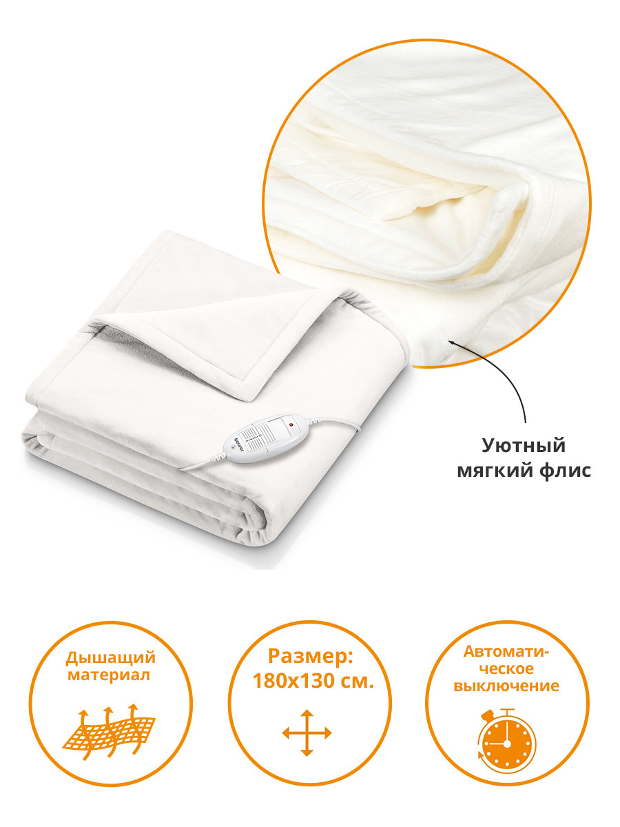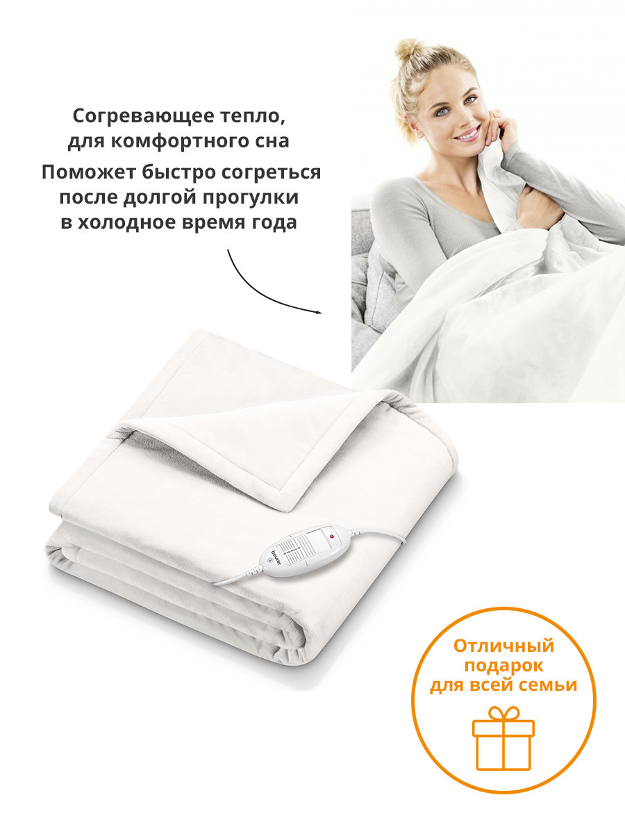 Электроодеяло, 6 температурных режимов. Съемный подводящий провод. Oko-Tex: Текстиль, Воздухопроницаемый, автоотключение, Система безопасности Beurer (BSS)
