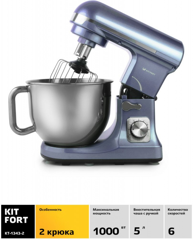 Миксер планетарный Kitfort КТ-1343-2 1000Вт светло-голубой/серый