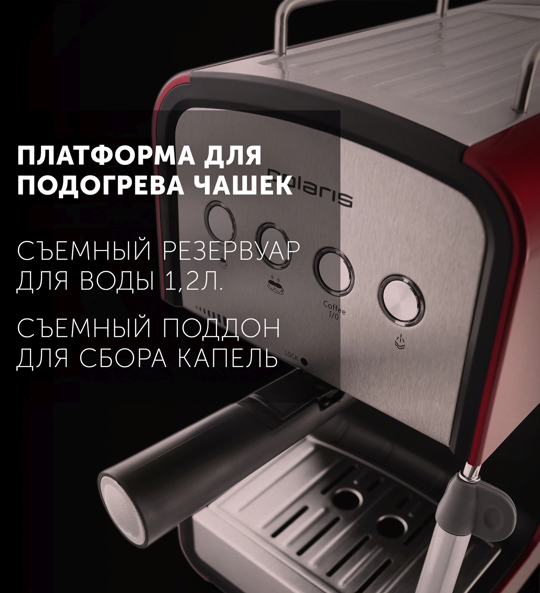 Кофеварка рожковая Polaris PCM 1516E Adore Crema 850Вт красный