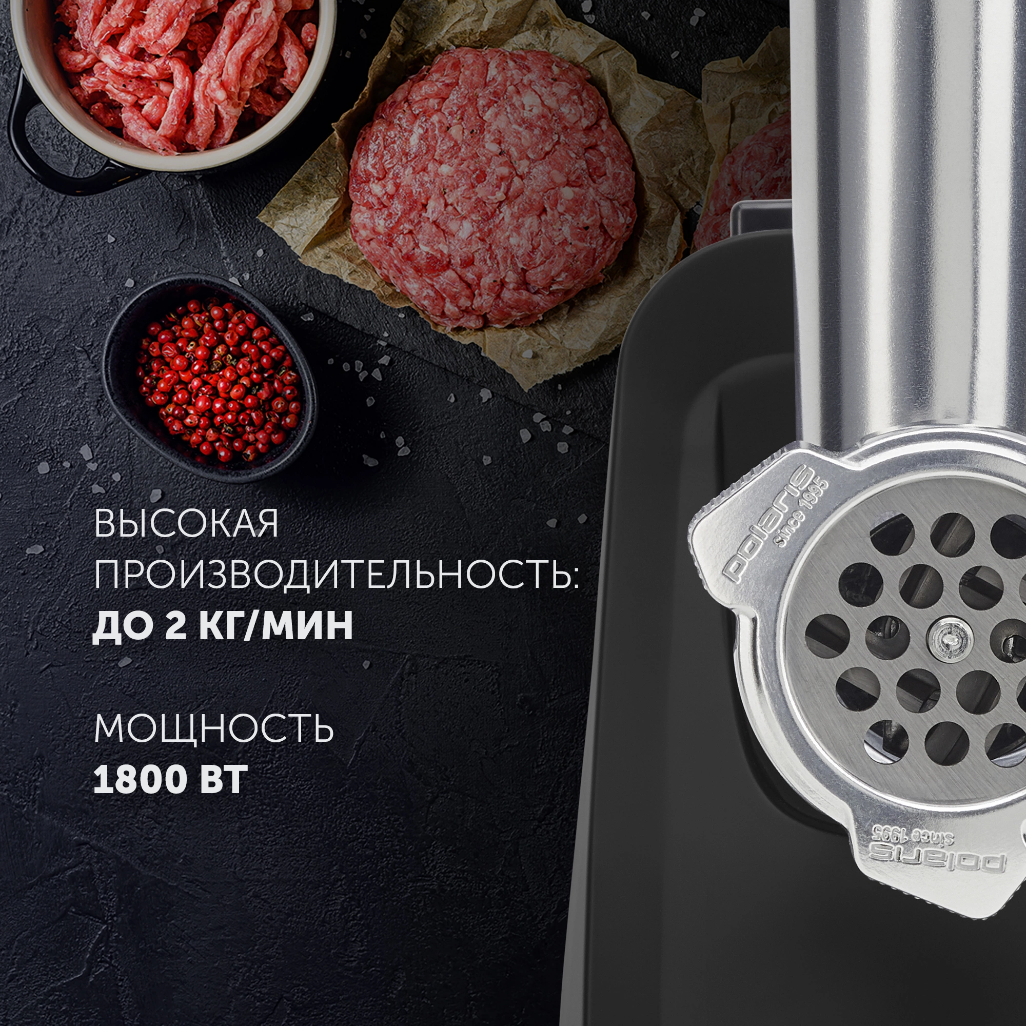 Мясорубка Polaris PMG 1855 RUS 1800Вт черный