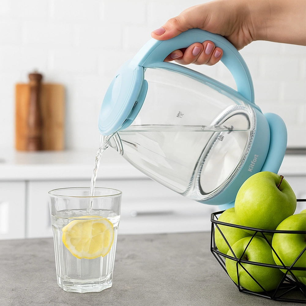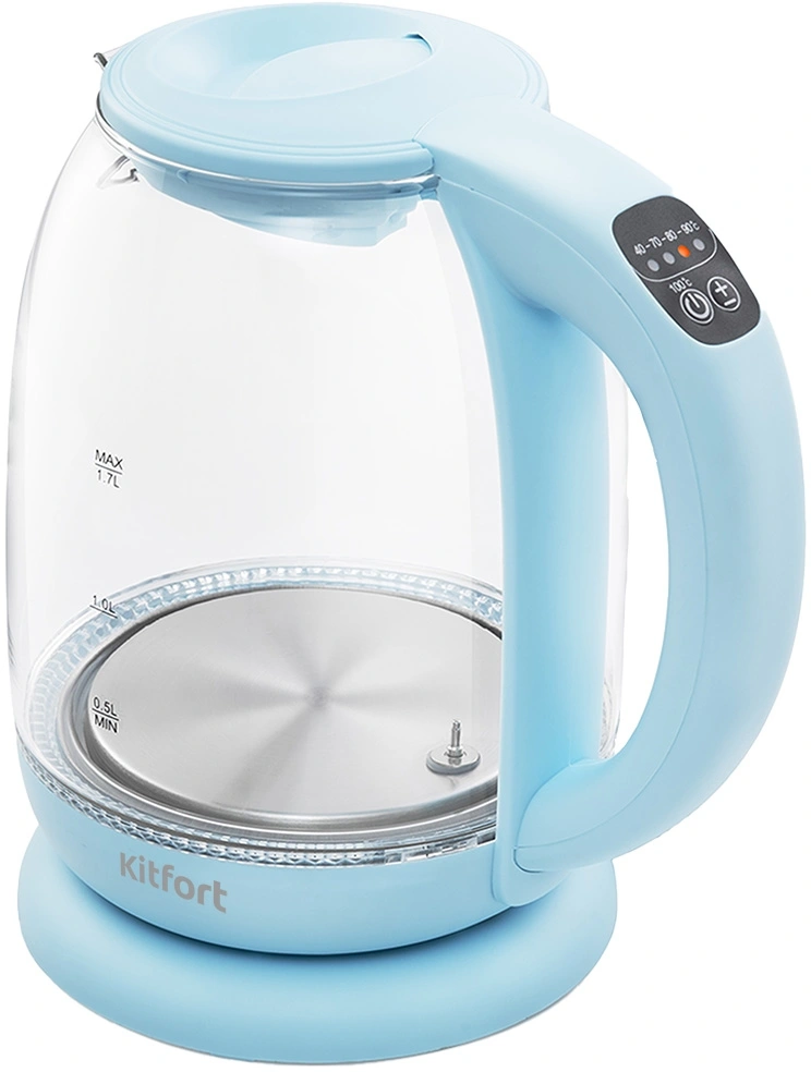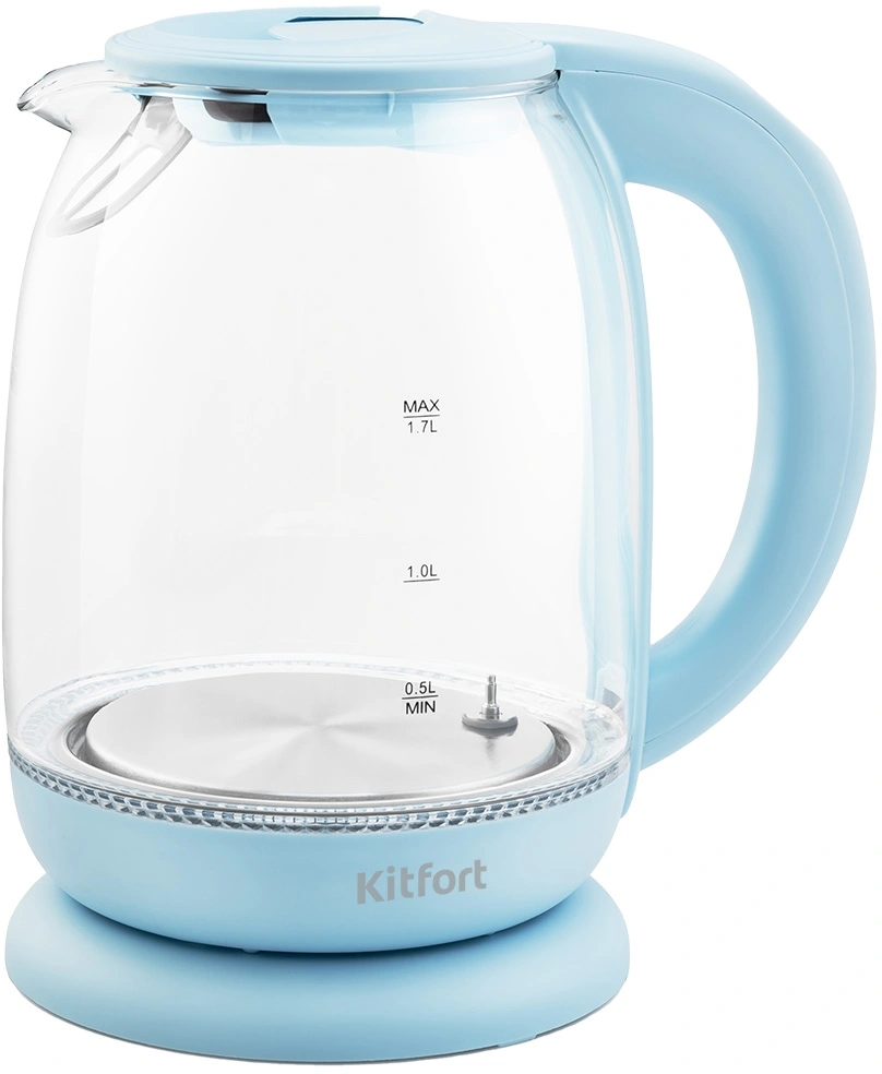 Чайник электрический Kitfort КТ-640-1 1.7л. 2200Вт голубой корпус: стекло/пластик