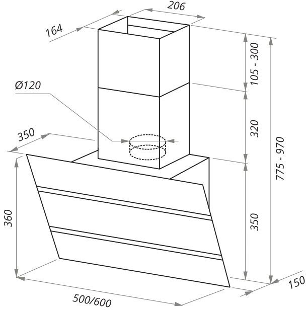 Вытяжка каминная Maunfeld Bridge 60 черный/черное стекло управление: кнопочное (1 мотор)