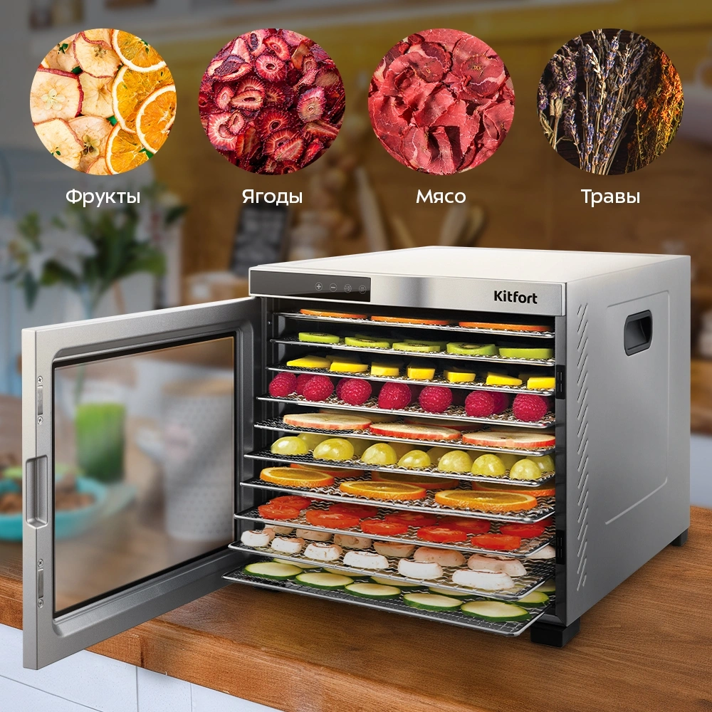 Сушка для фруктов и овощей Kitfort КТ-1910 30под. 1000Вт нержавеющая сталь