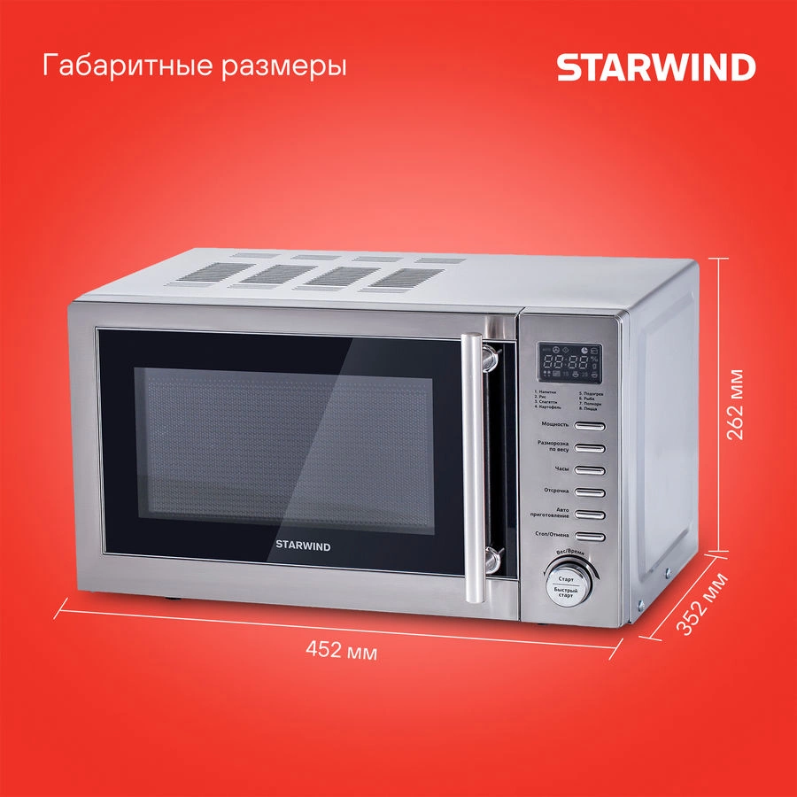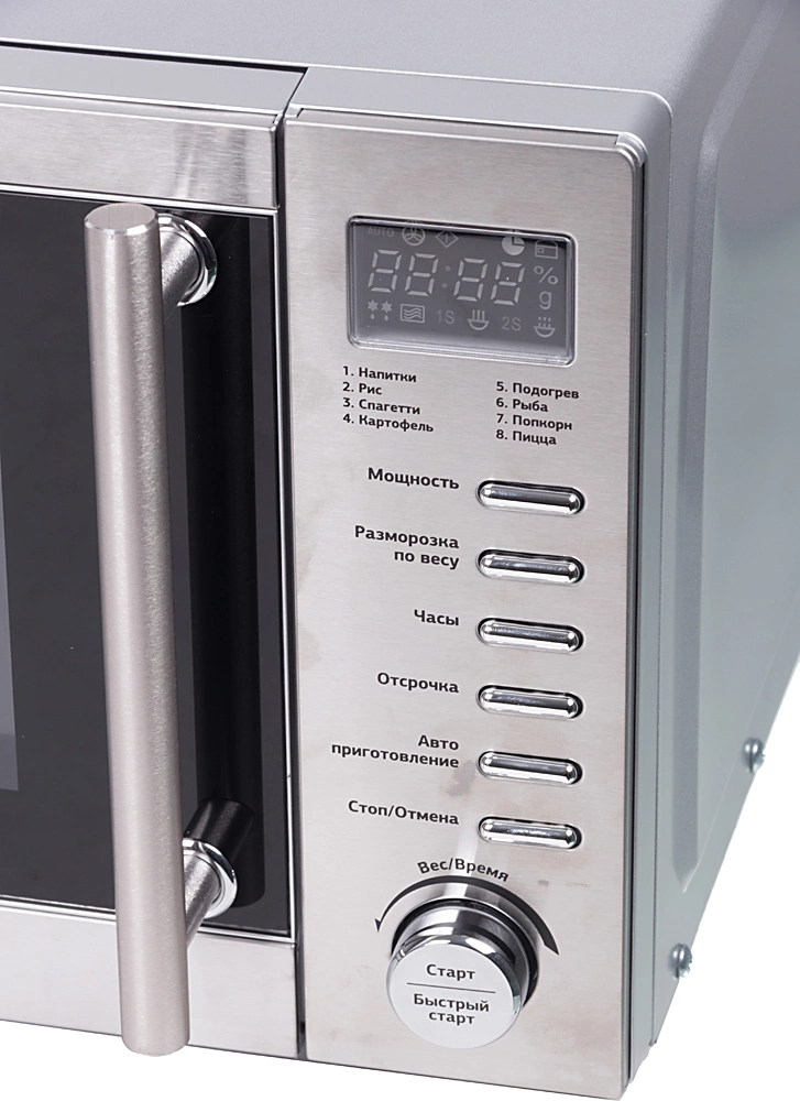 - Дополнительные режимыразмораживание по весу, экспресс-режим приготовления