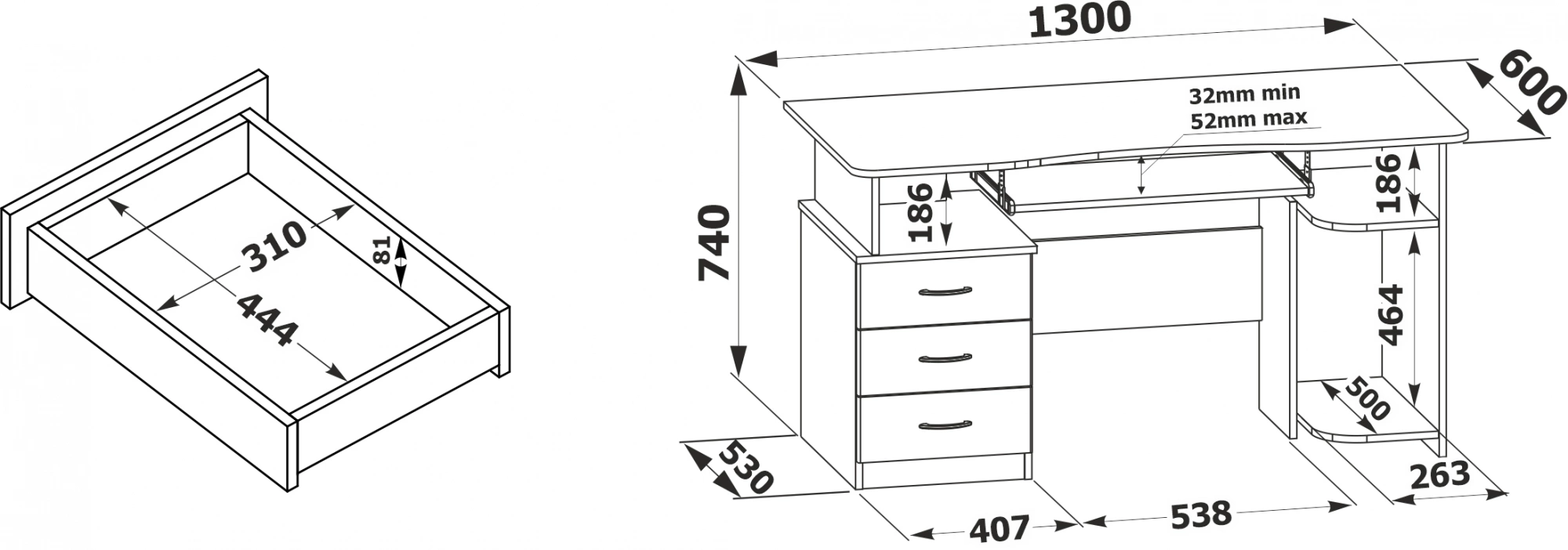 - Ширина ящика310