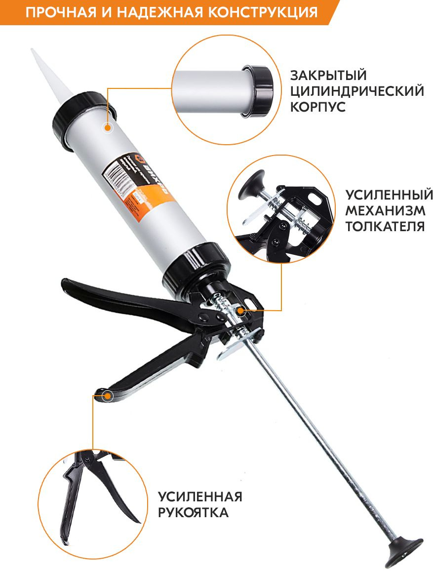 Пистолет для герметика Вихрь 73/3/6/2 механический закрытый серебристый/черный