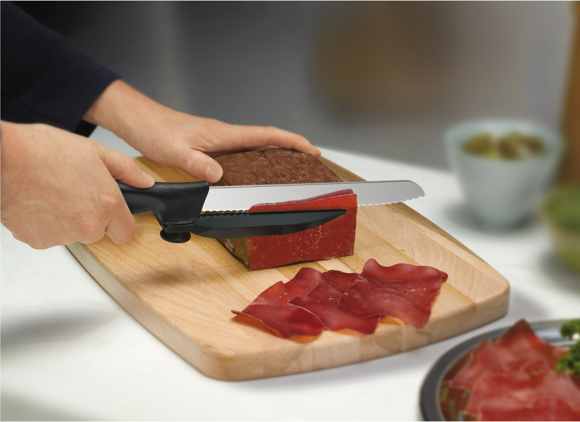 Кухонный нож с упором для отрезания равномерных ломтиков.