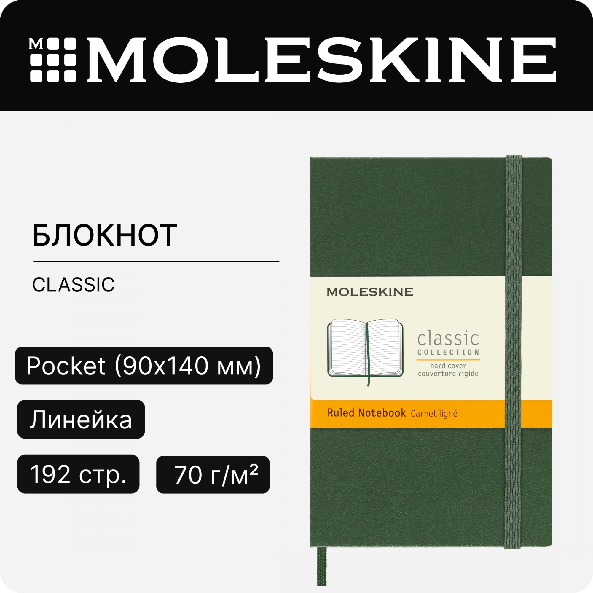Блокнот Moleskine CLASSIC MM710K15 Pocket 90x140мм 192стр. линейка твердая обложка зеленый