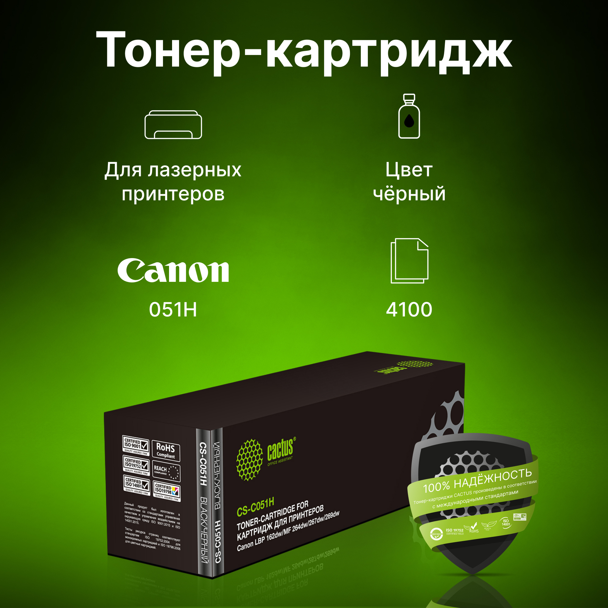Картридж лазерный Cactus CS-C051H 051H черный (4100стр.) для Canon LBP 162dw/MF 264dw/267dw/269dw
