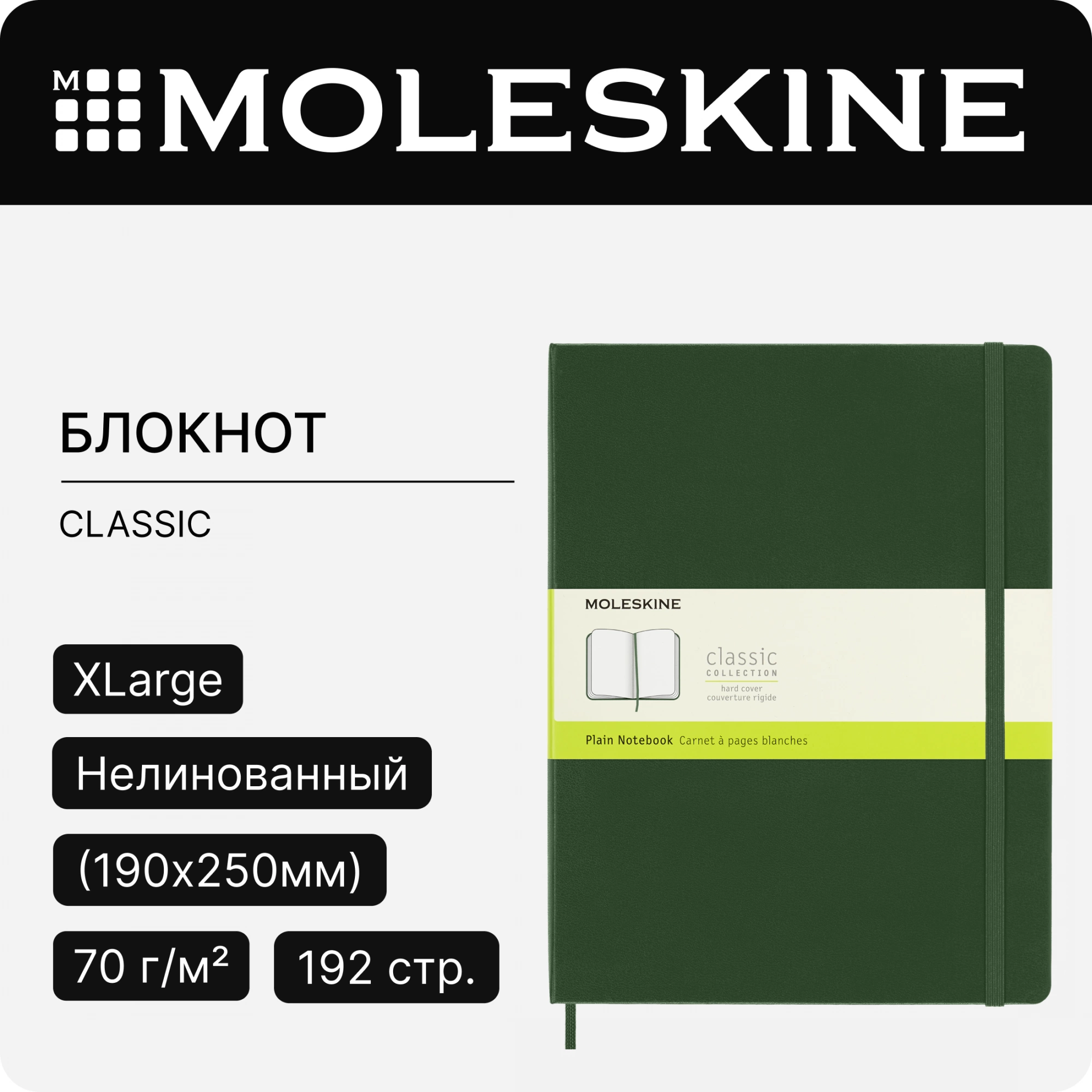 Блокнот Moleskine CLASSIC QP092K15 XLarge 190х250мм 192стр. нелинованный твердая обложка зеленый