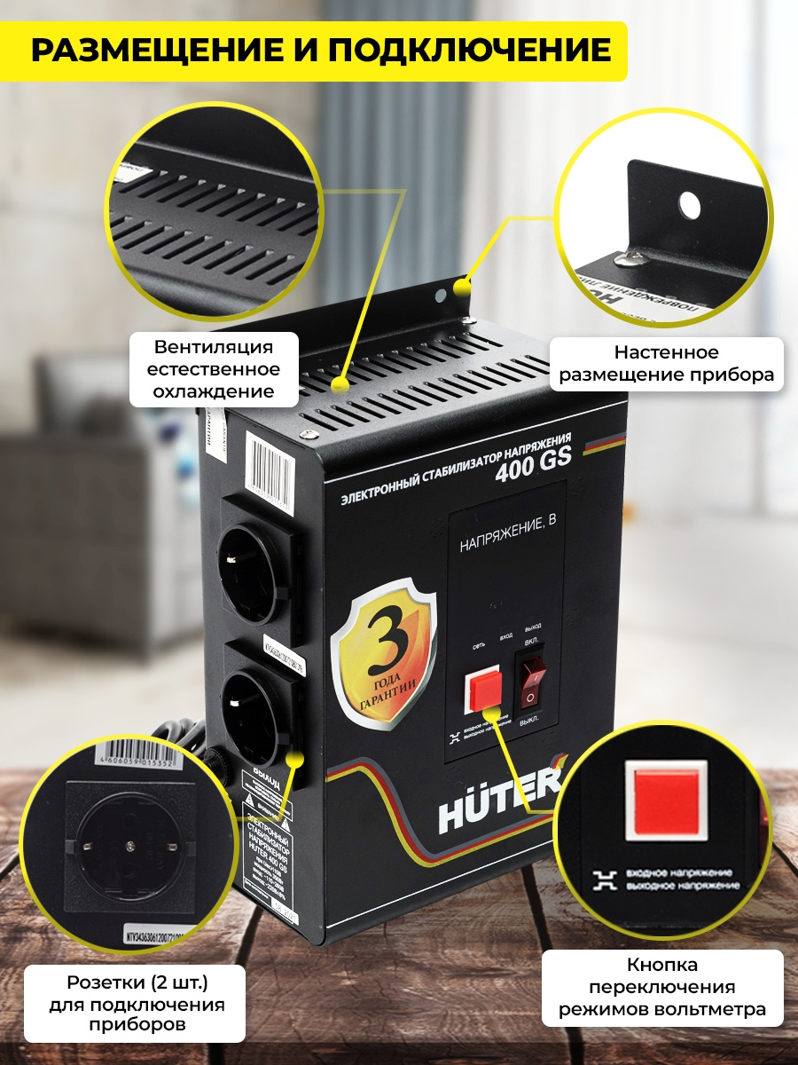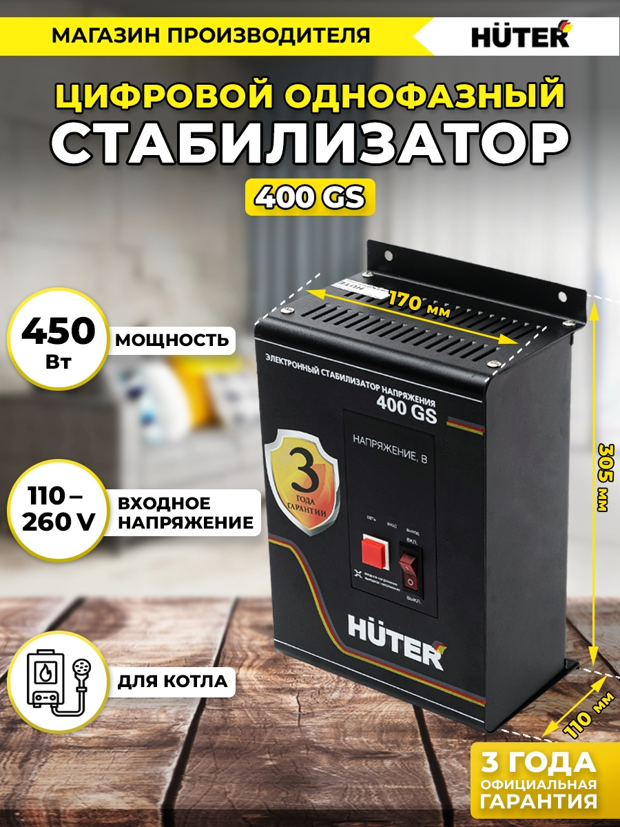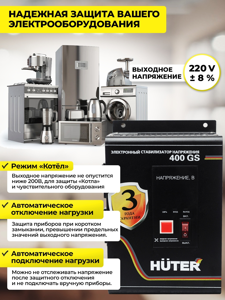 Стабилизатор напряжения Huter 400GS 0.35кВА однофазный серый (63/6/12)