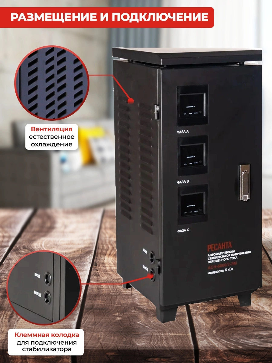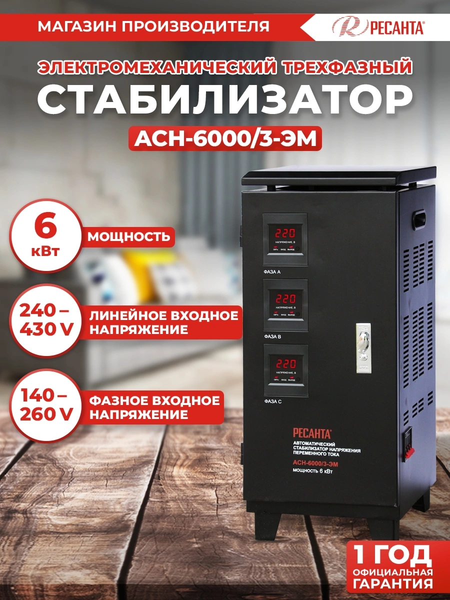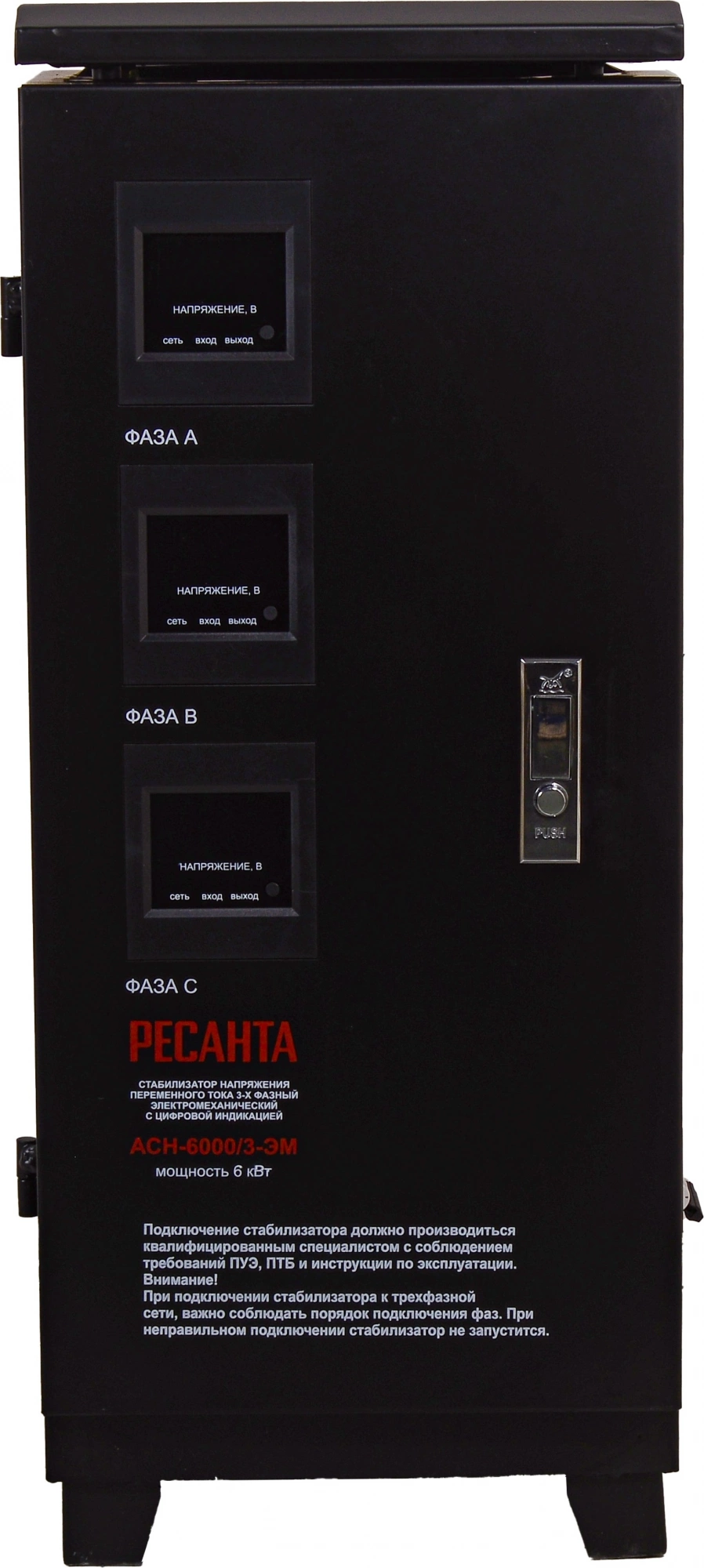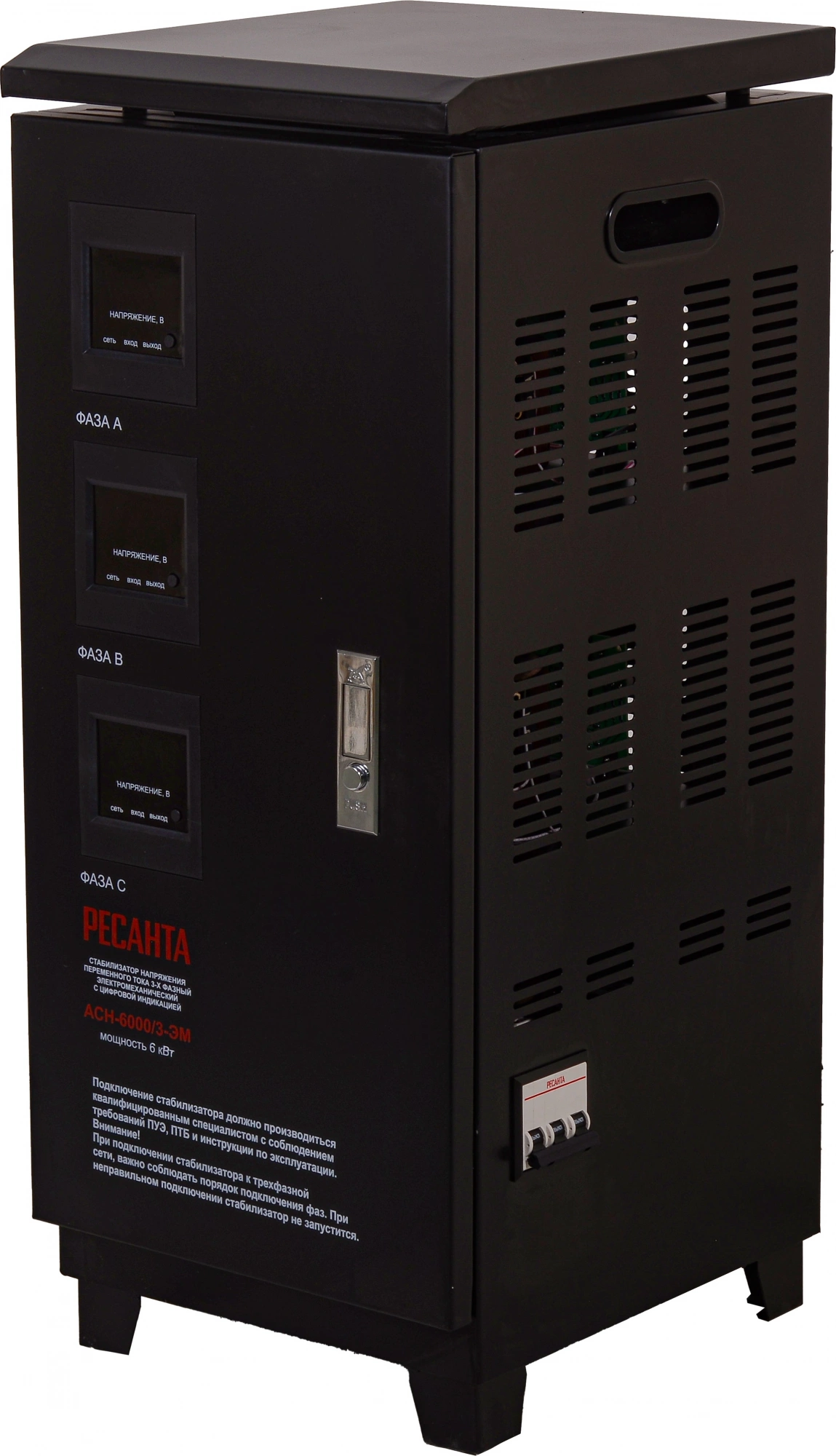 Стабилизатор напряжения Ресанта АСН-6000/3-ЭМ трехфазный черный (63/4/3)