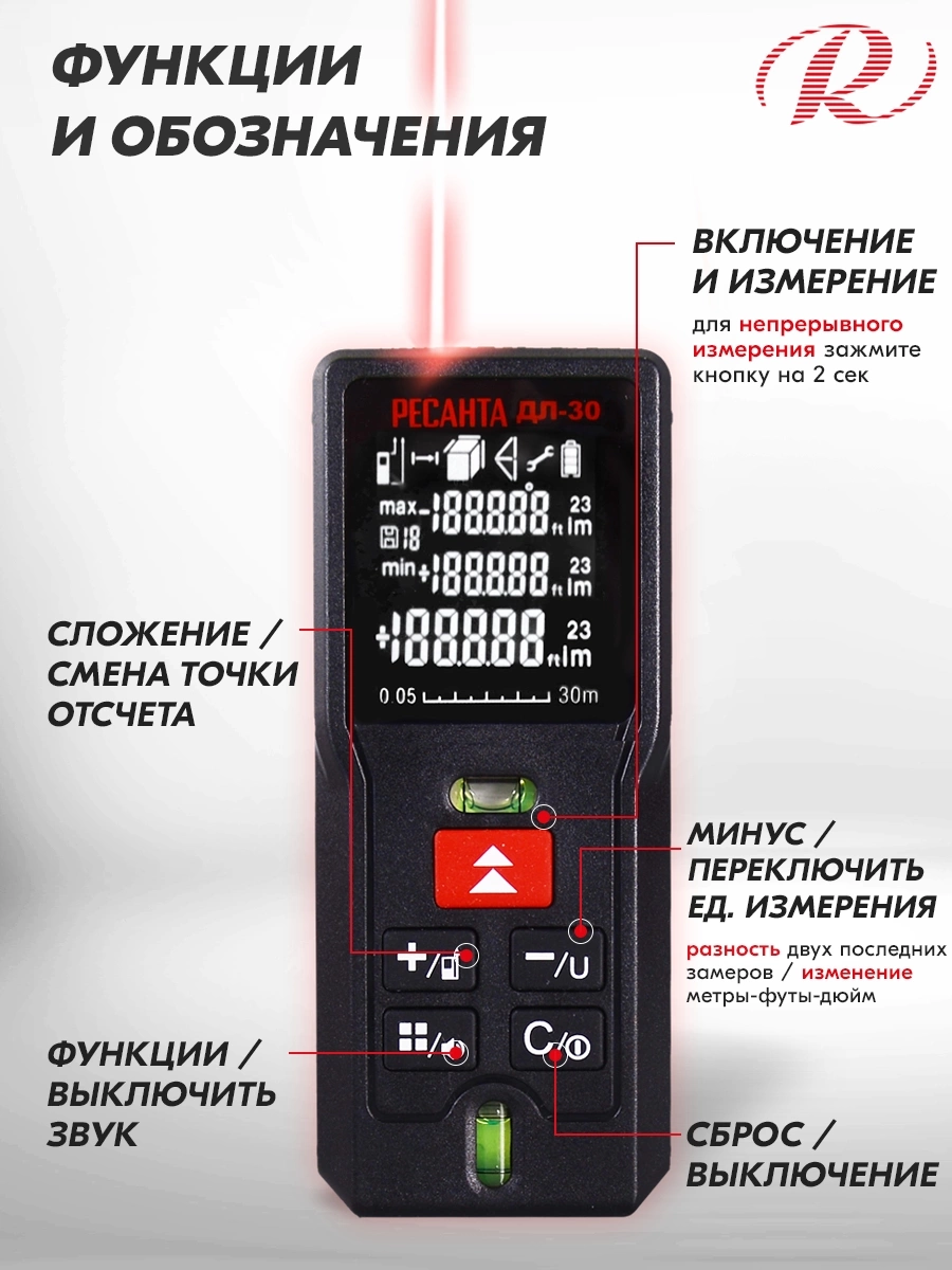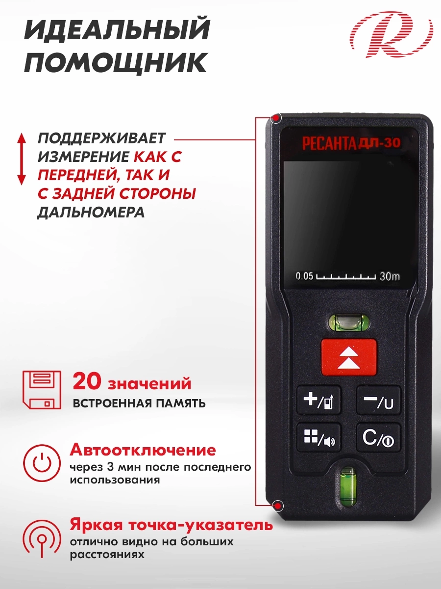 Лазерный дальномер Ресанта ДЛ-30 2кл.лаз. 635нм (61/10/519)