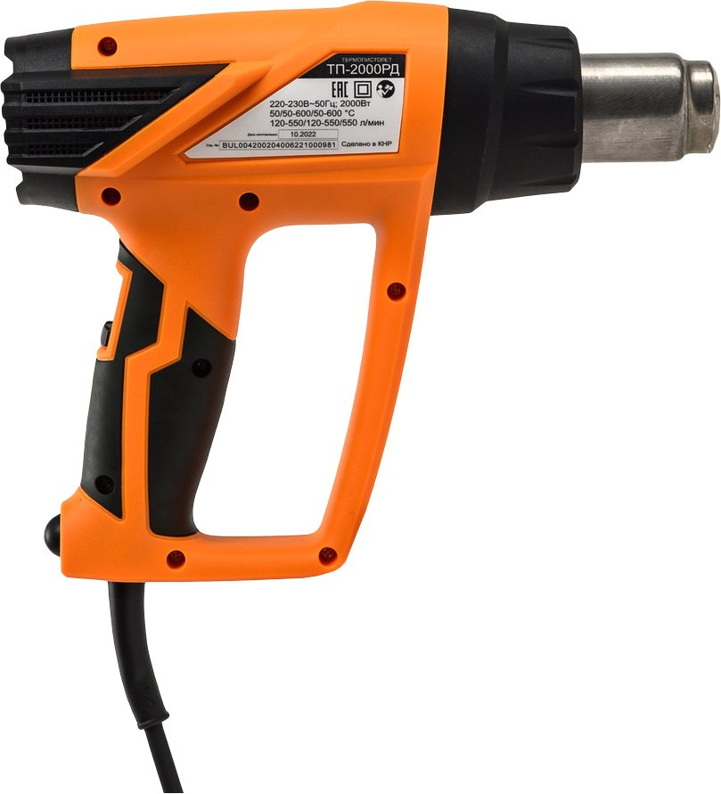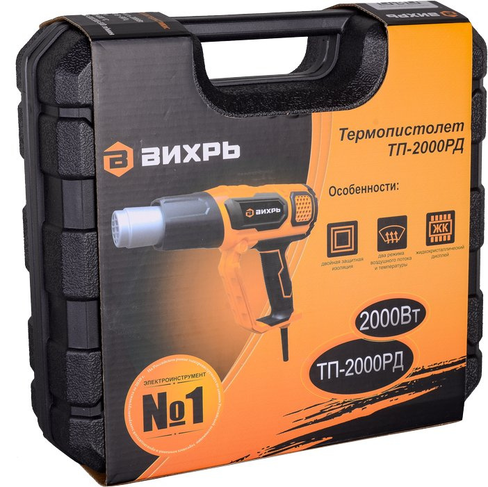 - ОсобенностиКейс. Есть точная регулировка температуры. Преимущества ТП-2000РД: Три режима воздушного потока для более качественной работы; Точная регулировка температуры для разных типов материалов; ЖК дисплей позволяет выбрать определенную температуру и работать с ней. даже после повторного включения устр