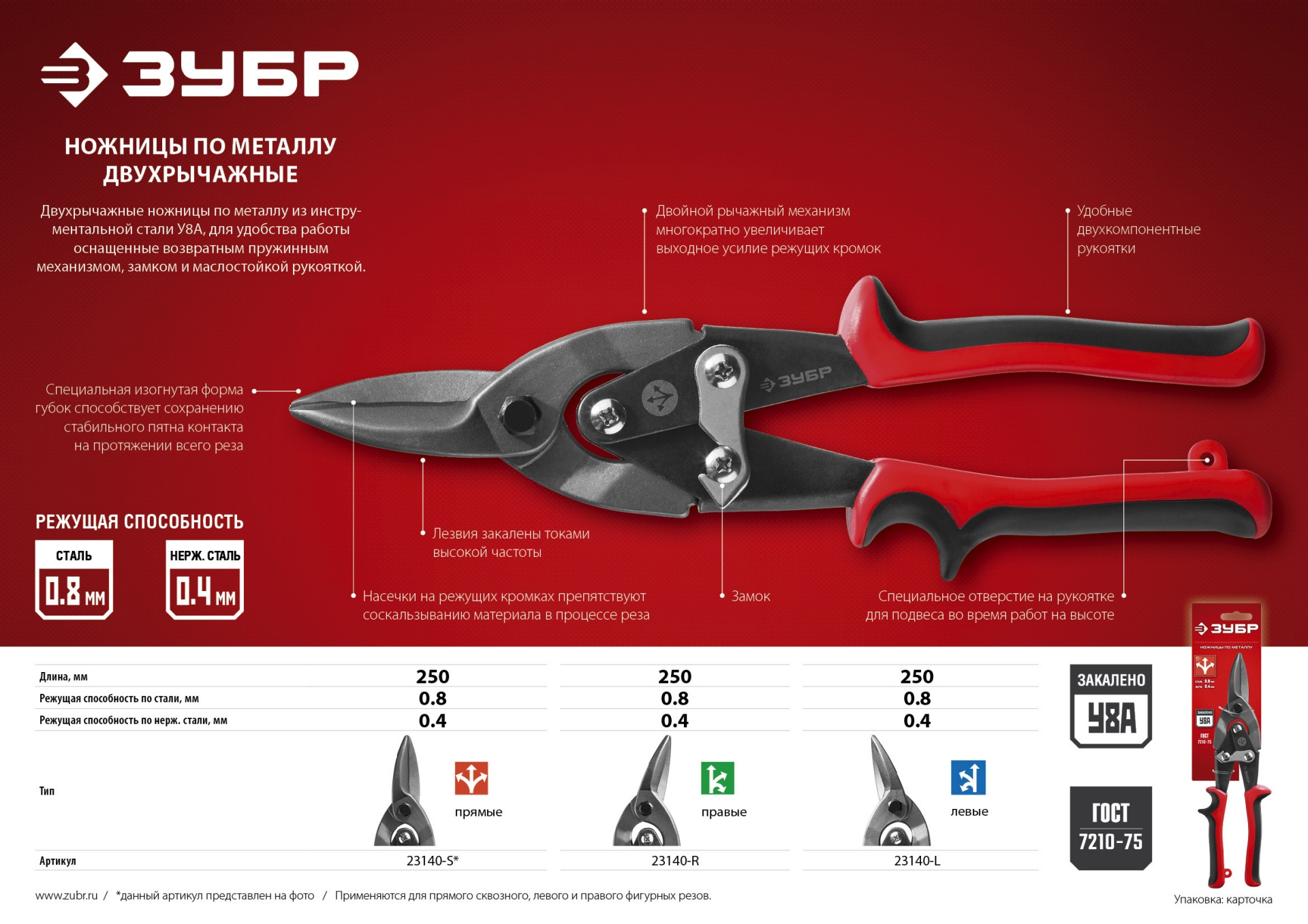Ножницы по металлу для точного реза листового металла, режущая способность: сталь 0.8 мм, нерж. 0.4 мм