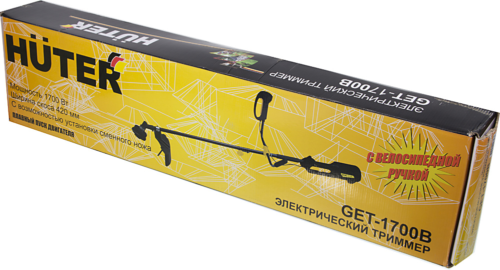 Триммер электрический Huter GET-1700B 1700Вт разбор.штан. реж.эл.:леска/нож