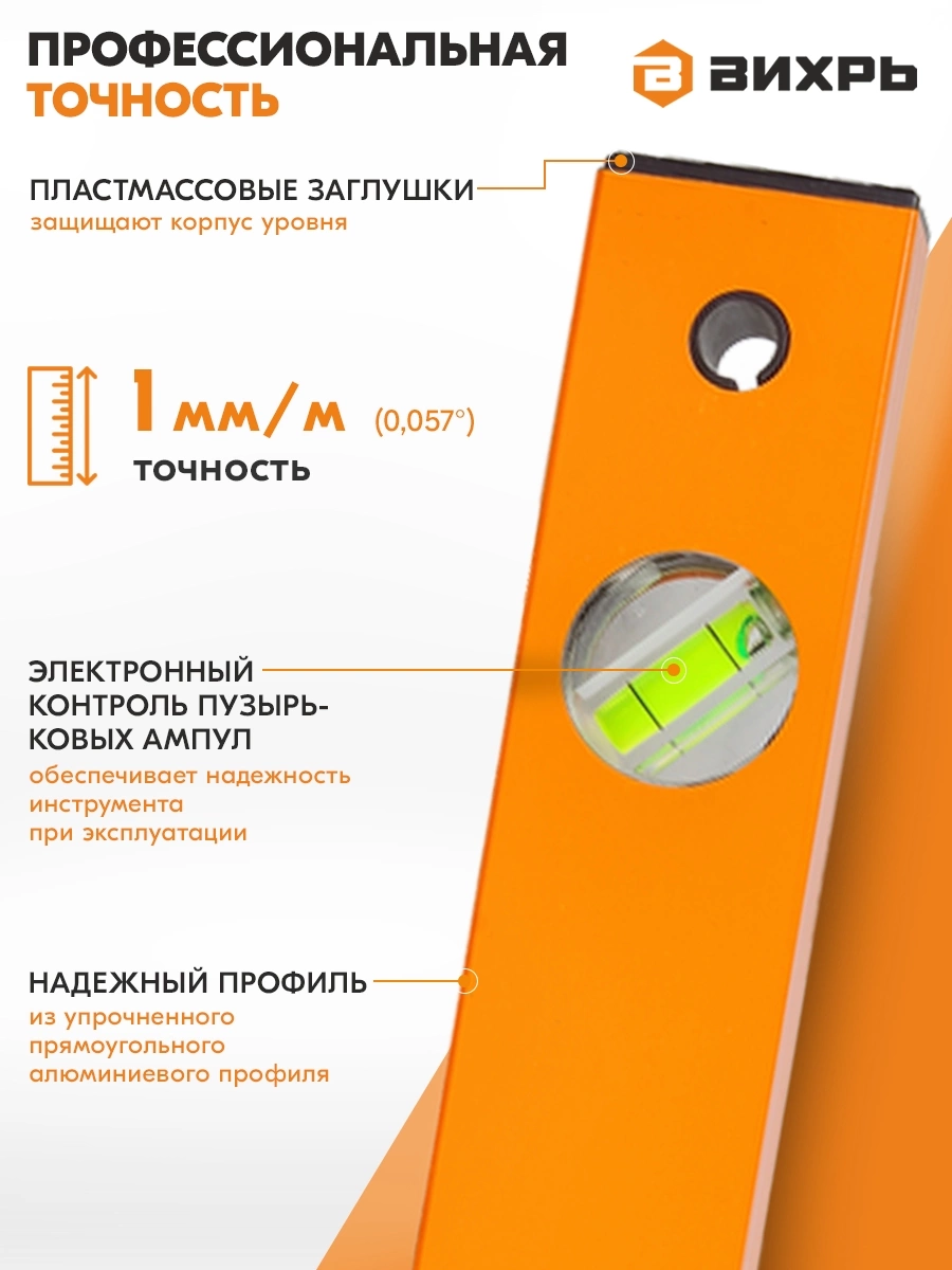Уровень Вихрь 73/11/4/5 пузырьковый 3глаз. оранжевый