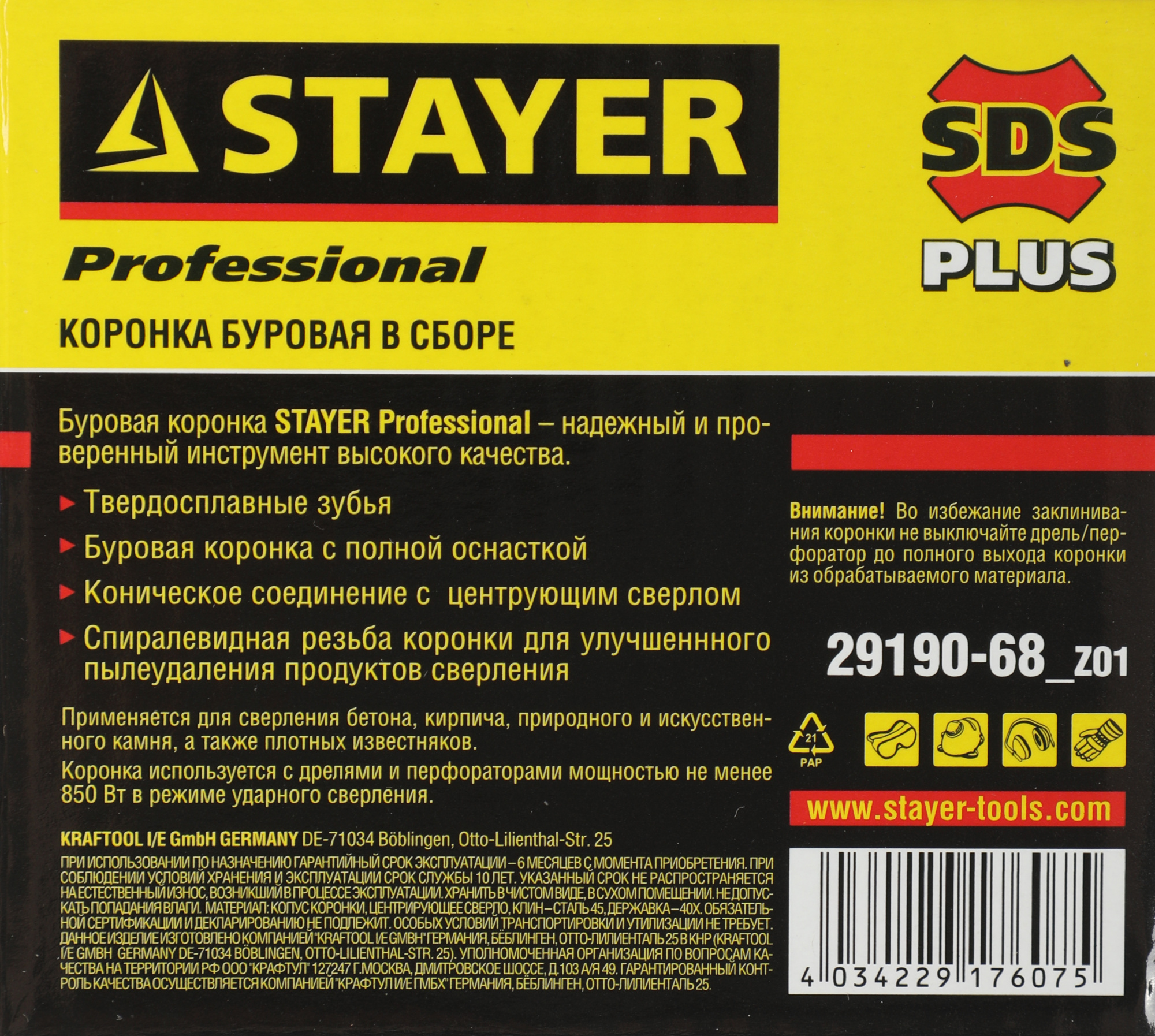 Коронка Stayer 29190-68_z01 по бетону для дрелей/перфораторов