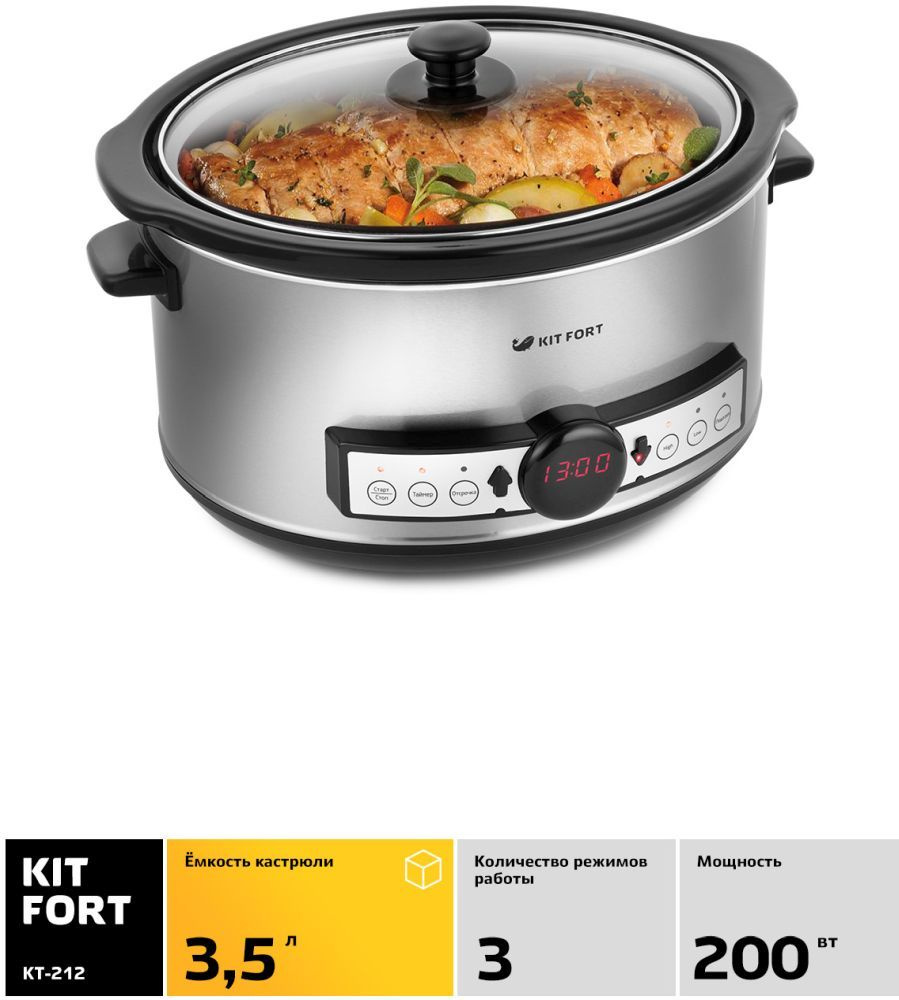 Медленноварка Kitfort КТ-212 3.5л 220Вт серебристый/черный