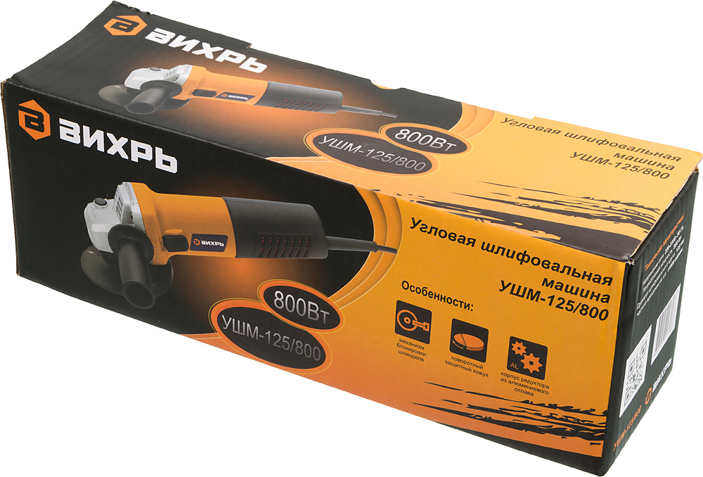 Углошлифовальная машина Вихрь УШМ-125/800 800Вт 11000об/мин рез.шпин.:M14 d=125мм (72/12/9)
